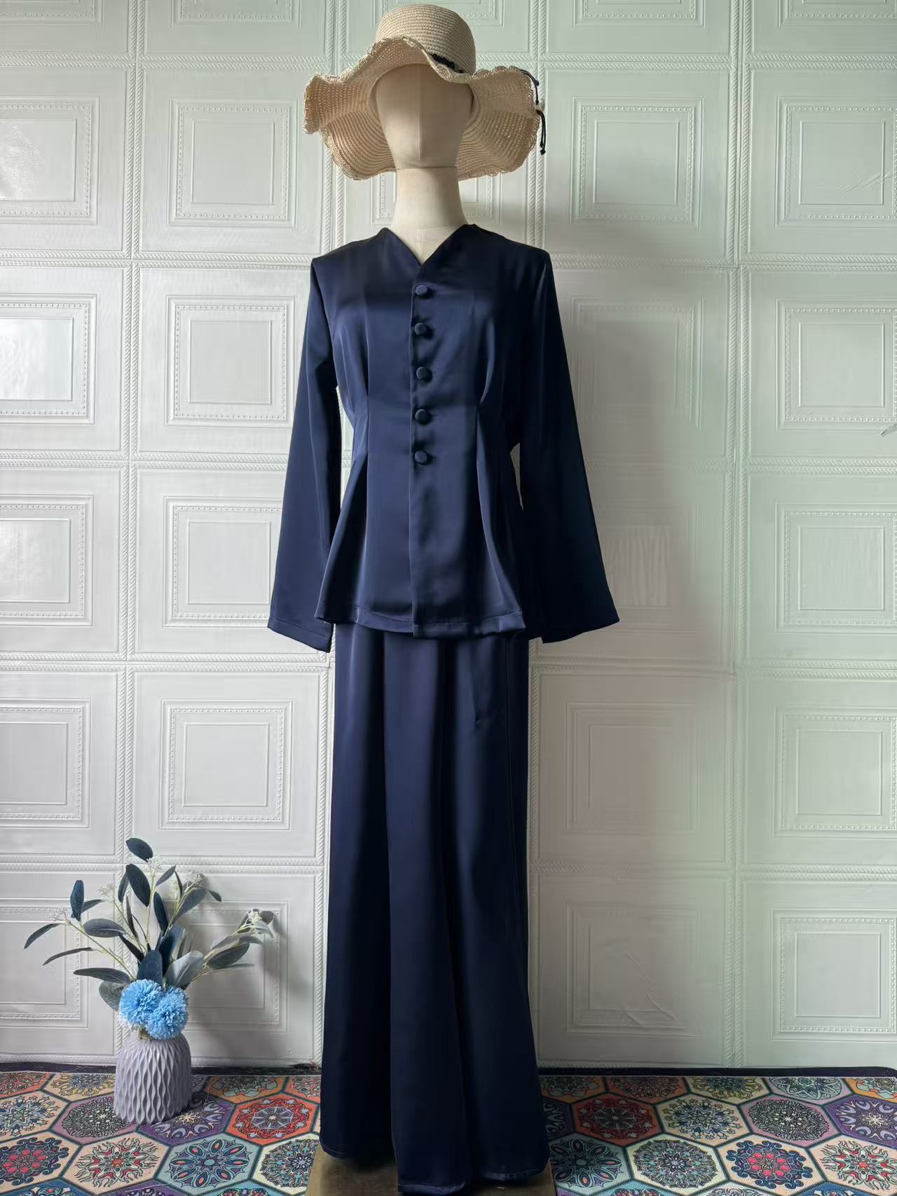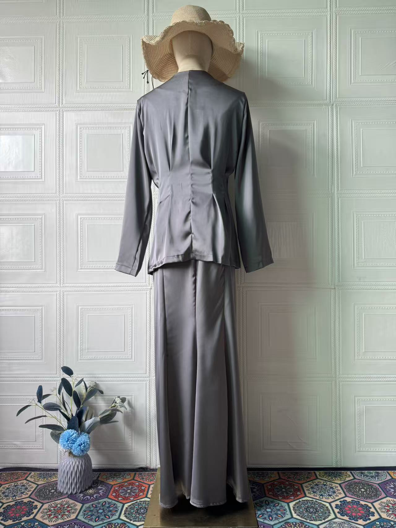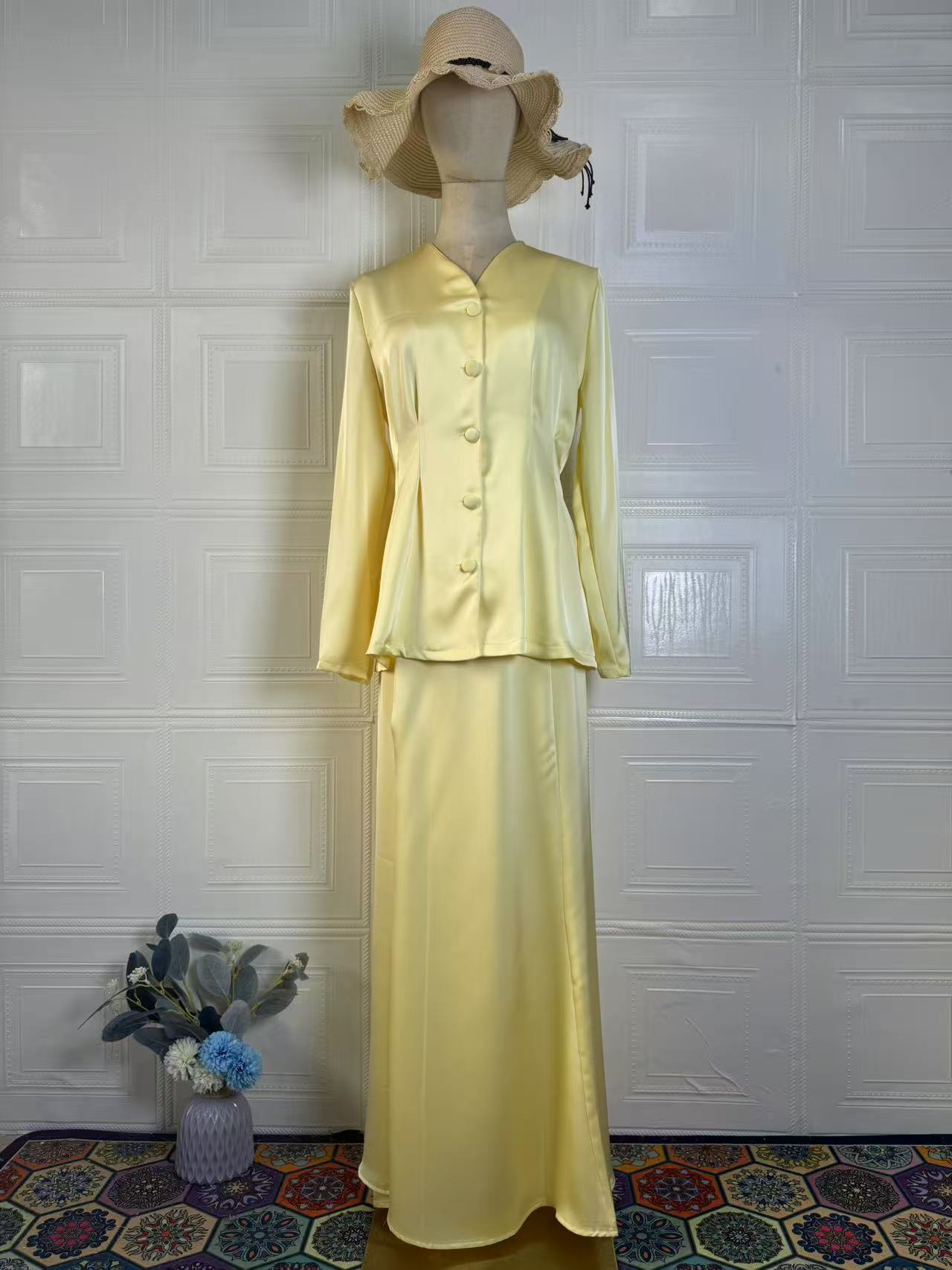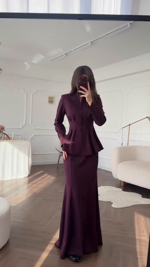 2025 봄 유럽과 미국의 우아한 복고풍 부드러운 단색 긴팔 탑과 롱 스커트 우아하고 편안한 여성용 정장
