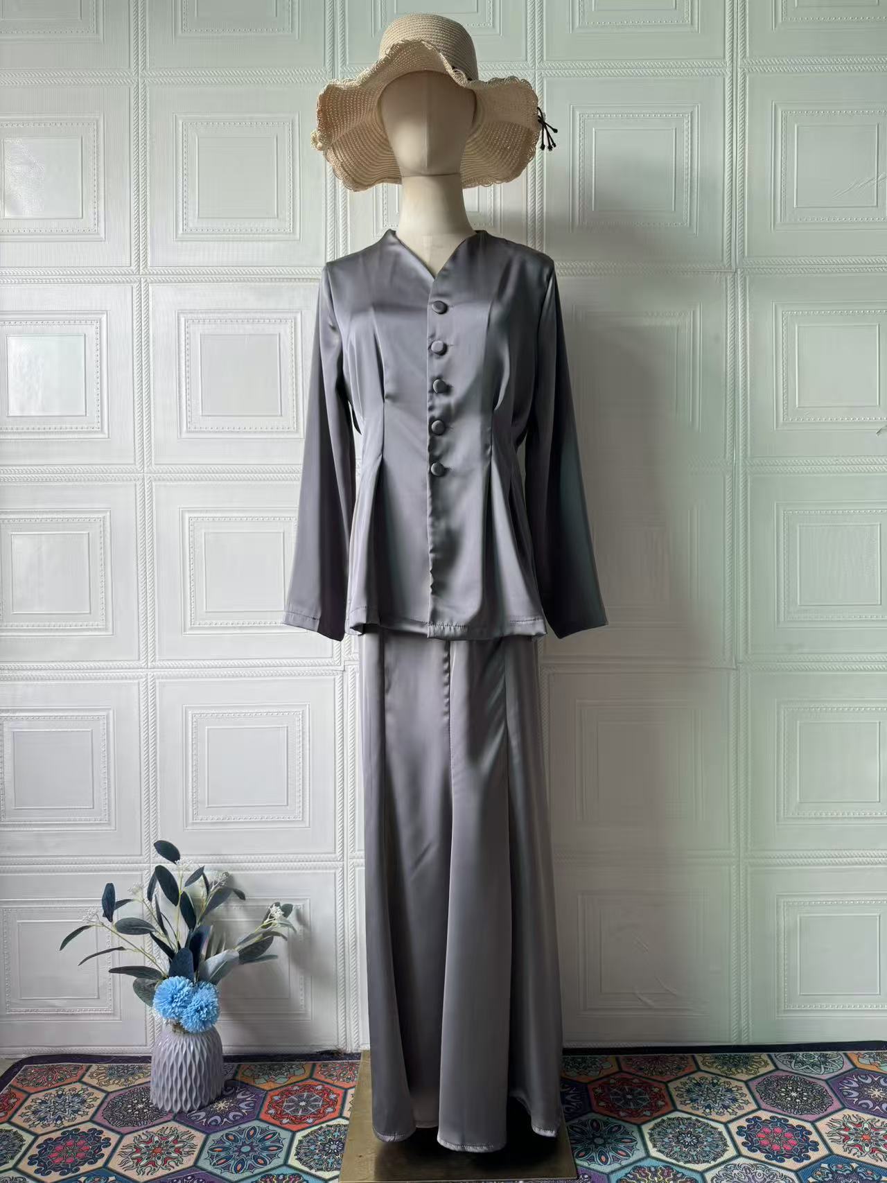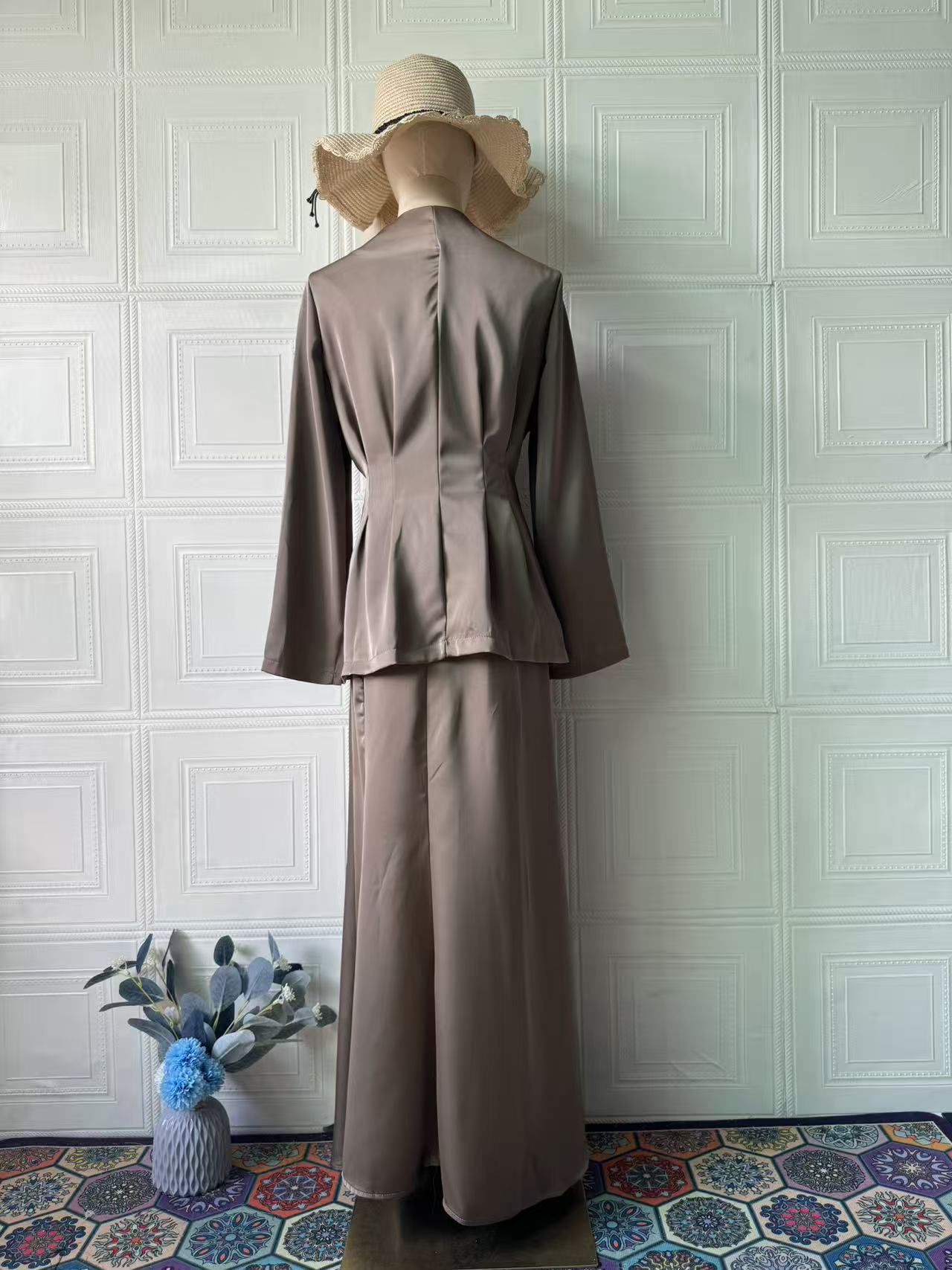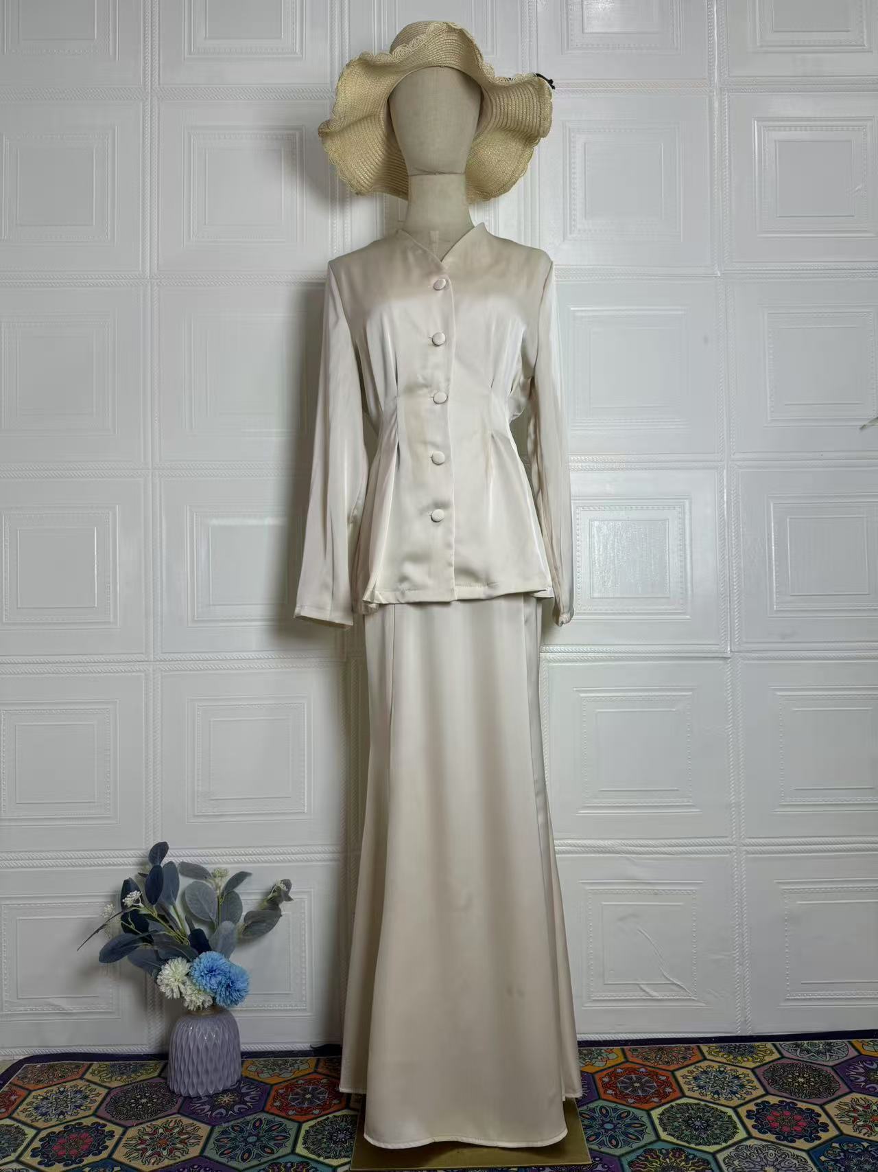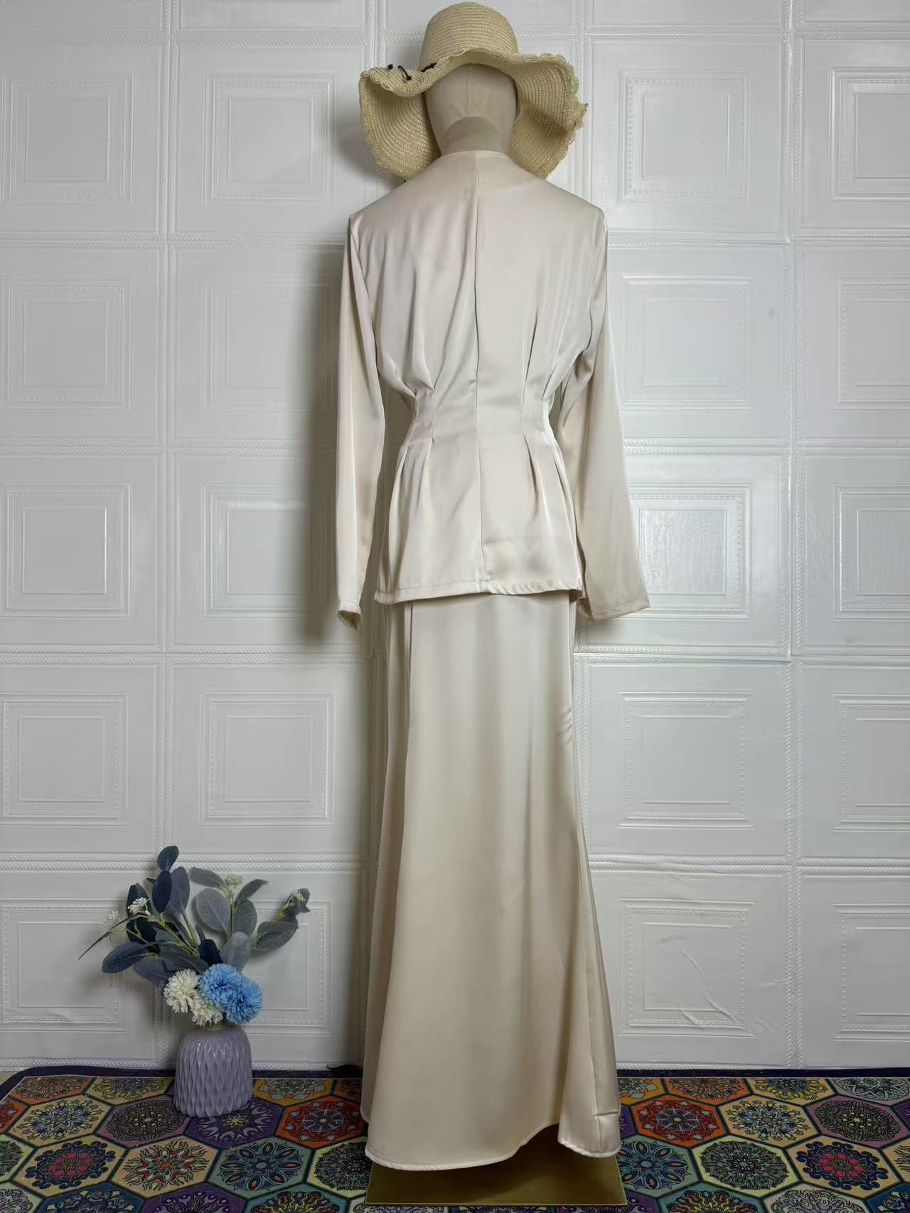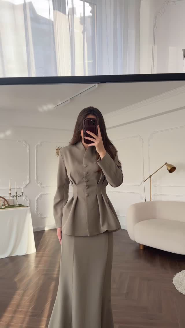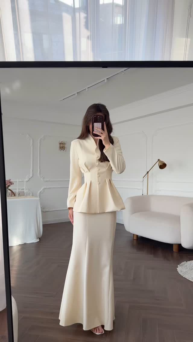 2025 봄 유럽과 미국의 우아한 복고풍 부드러운 단색 긴팔 탑과 롱 스커트 우아하고 편안한 여성용 정장스토어 가기