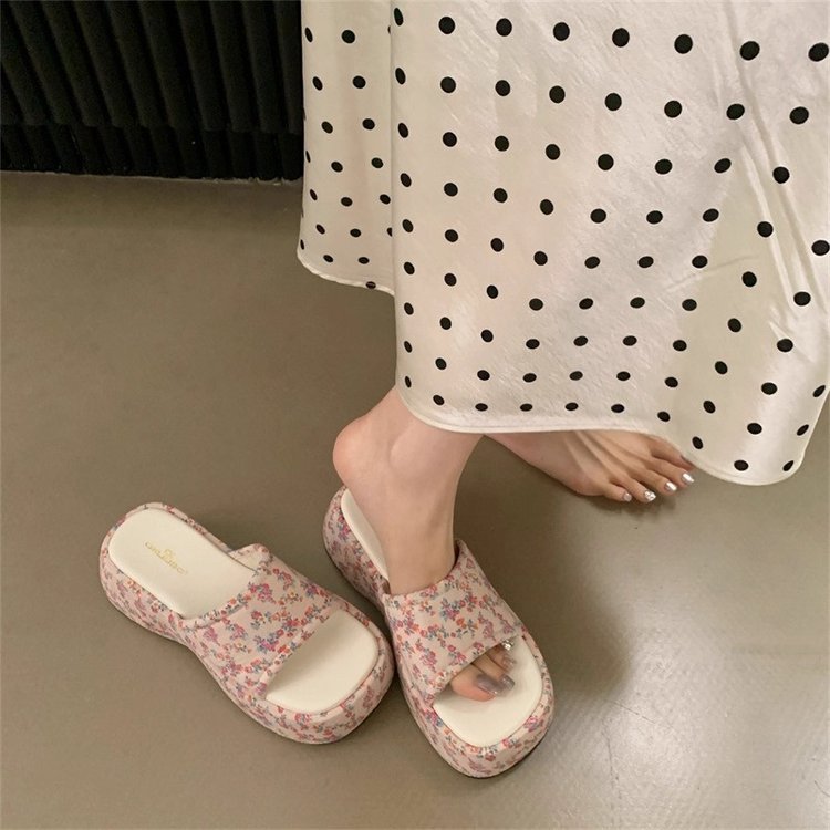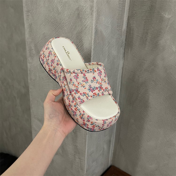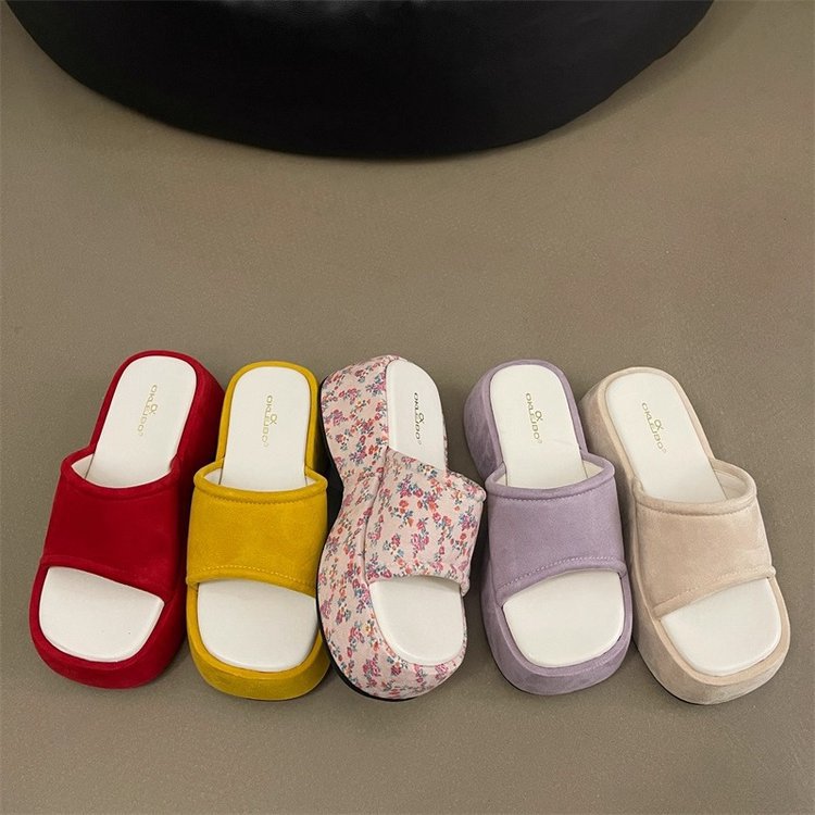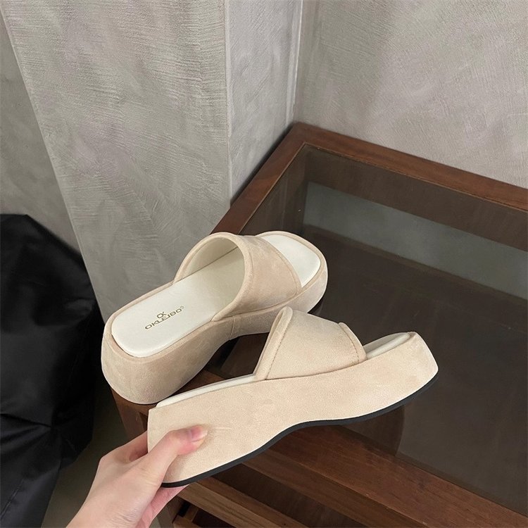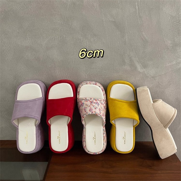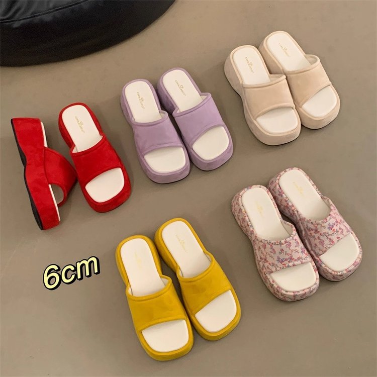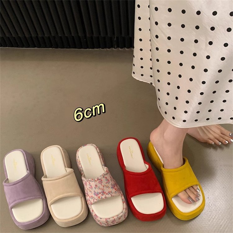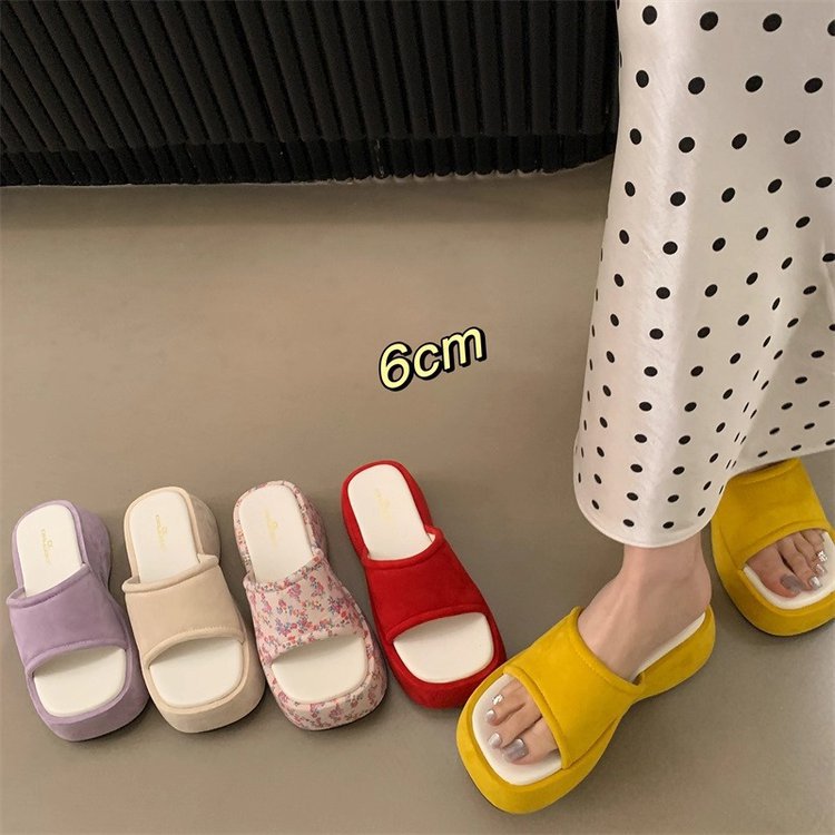여름에 스커트와 함께 입기 좋은 여성용 작은 두꺼운 밑창 6cm 높이 슬리퍼, 요정 스타일의 아름다운 여성용 샌들
