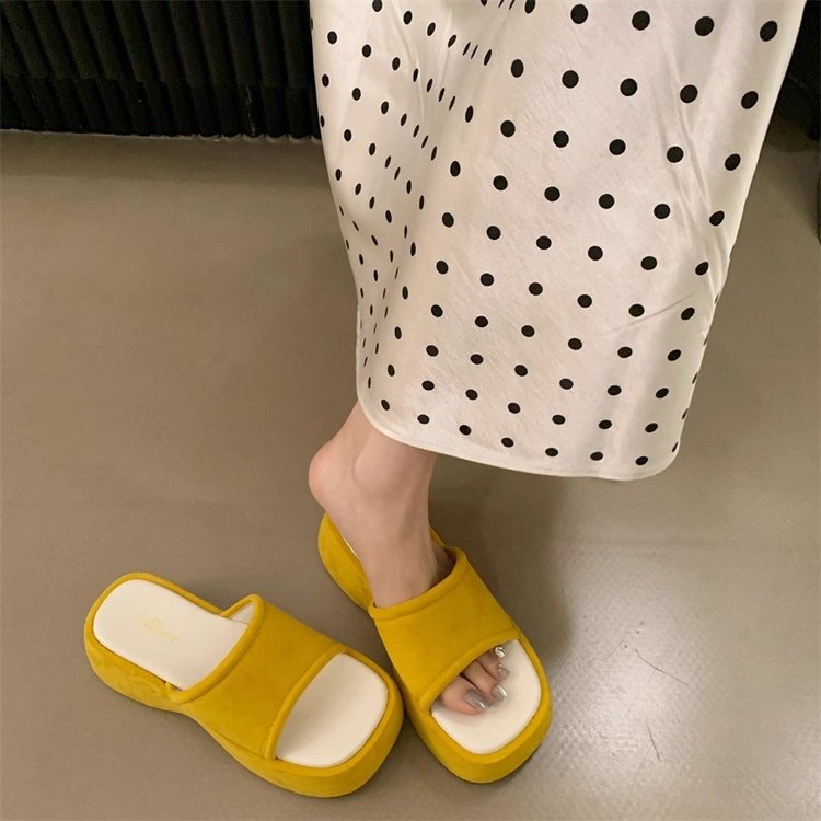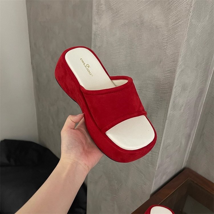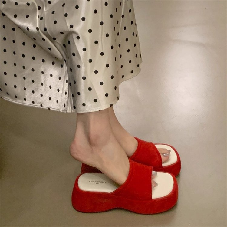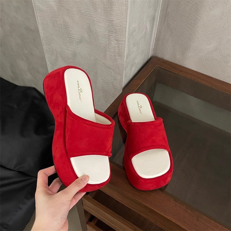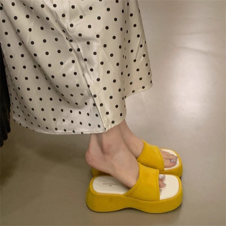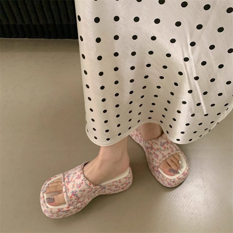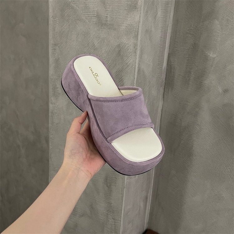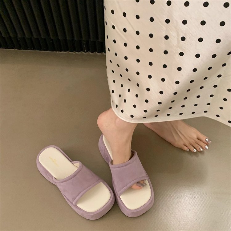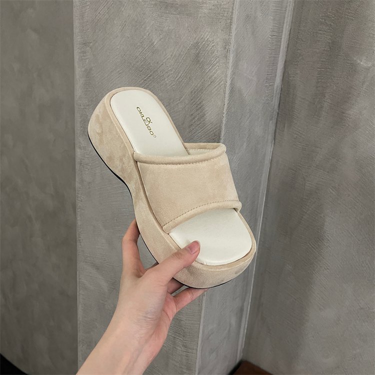 여름에 스커트와 함께 입기 좋은 여성용 작은 두꺼운 밑창 6cm 높이 슬리퍼, 요정 스타일의 아름다운 여성용 샌들