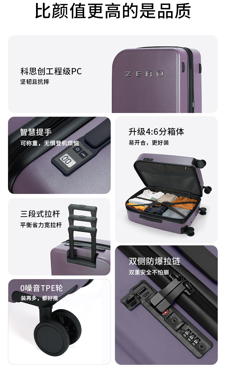 高端时尚超轻旅行箱拉链拉杆箱登机pc行李箱(带logo)
