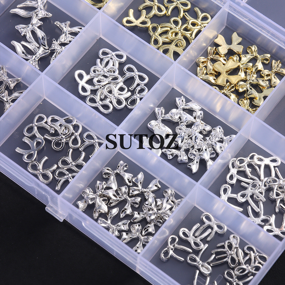국경 간 새로운 네일 아트 액세서리 ins 달콤한 금색과 은색 활 요정 입체 네일 DIY 장식 액세서리스토어 가기