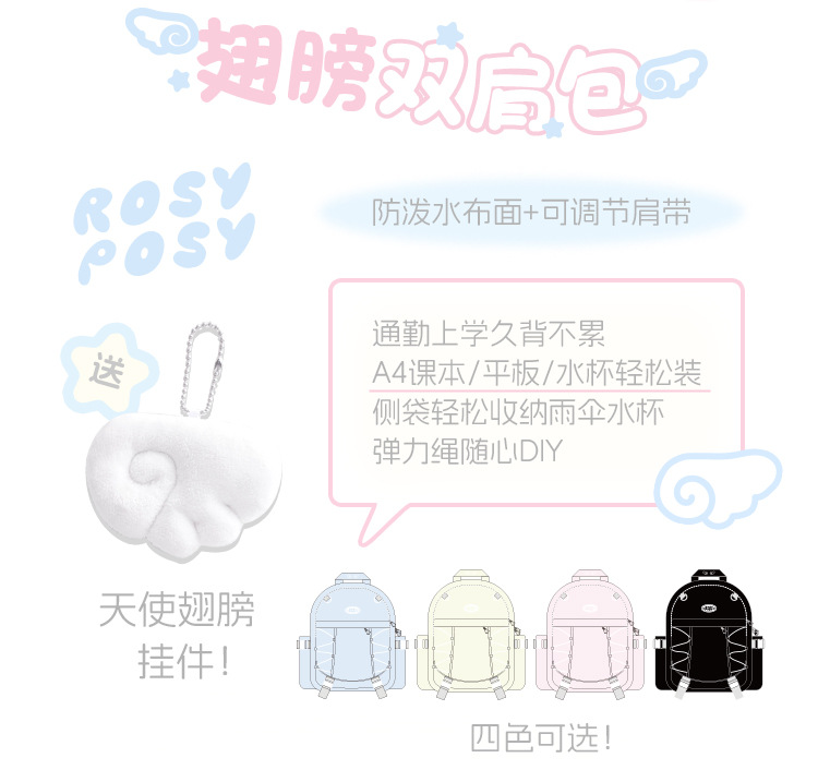 RosyPosy 소프트 윙윙 배낭 플러시 천사 날개 학생 배낭