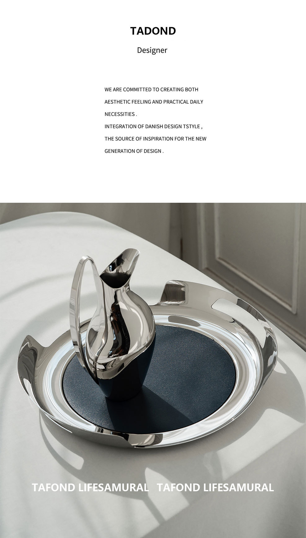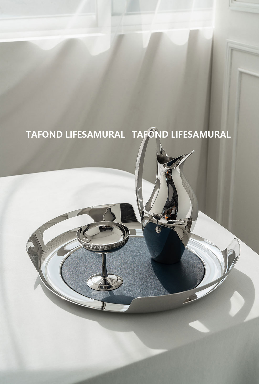 북유럽 스테인레스 스틸 블루 가죽 트레이 커피 식기 트레이 과일 트레이 디너 트레이 차 트레이 모델 룸 장식품