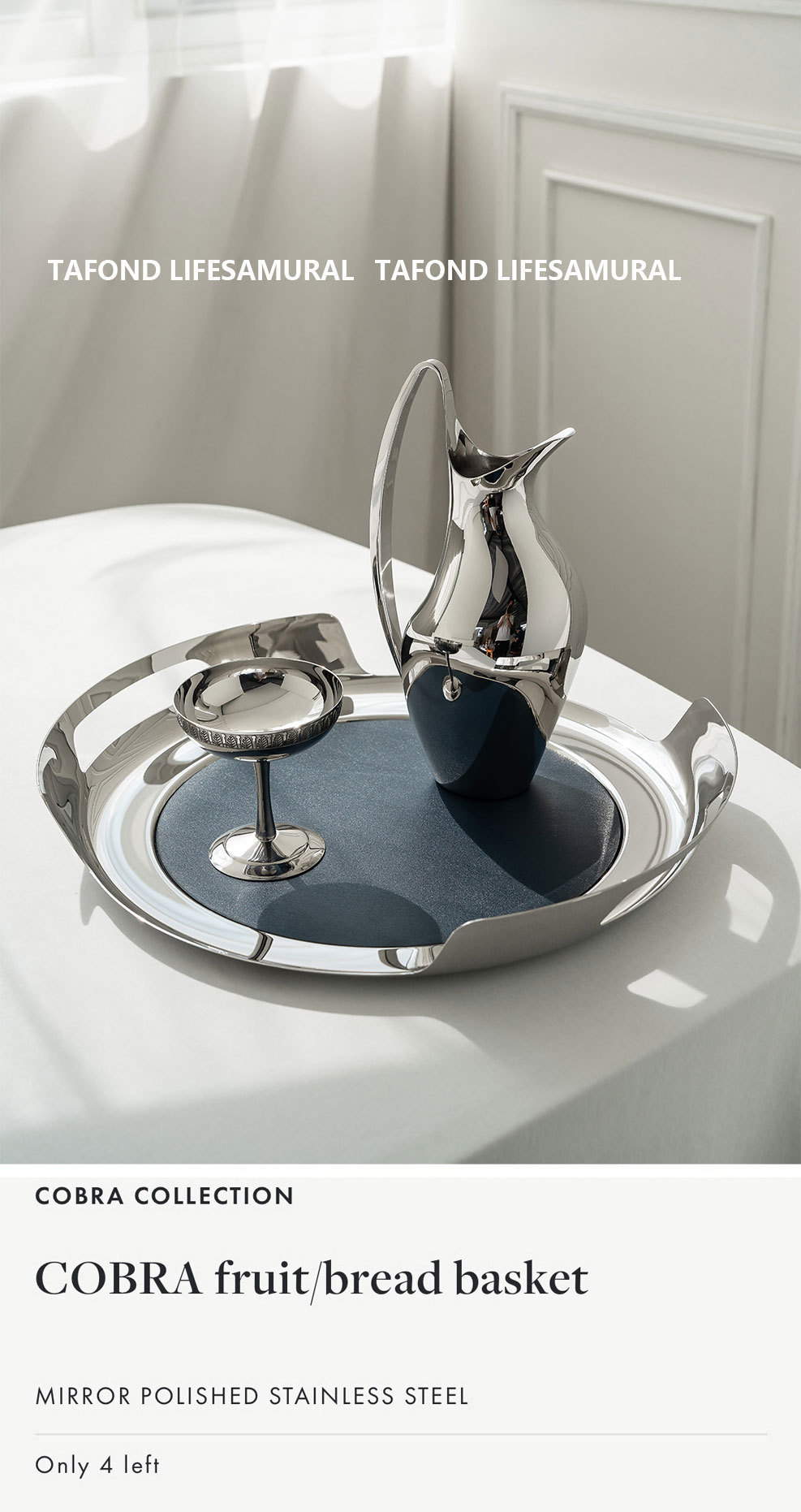 북유럽 스테인레스 스틸 블루 가죽 트레이 커피 식기 트레이 과일 트레이 디너 트레이 차 트레이 모델 룸 장식품스토어 가기