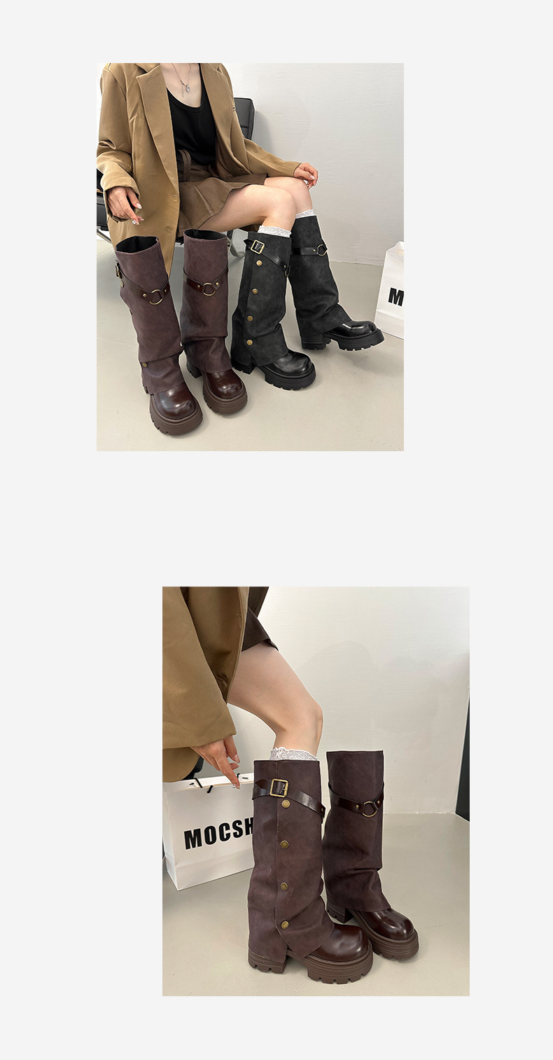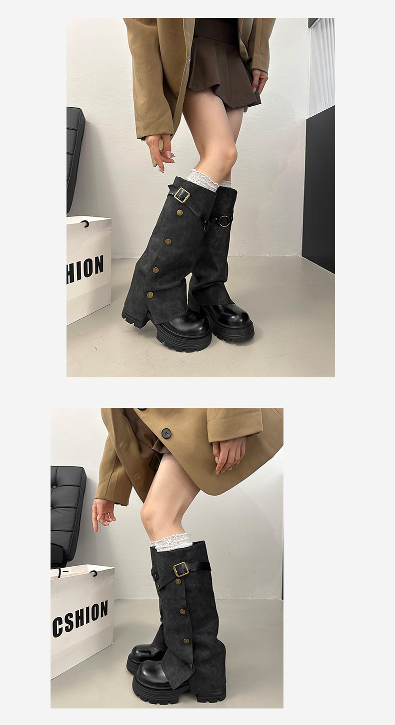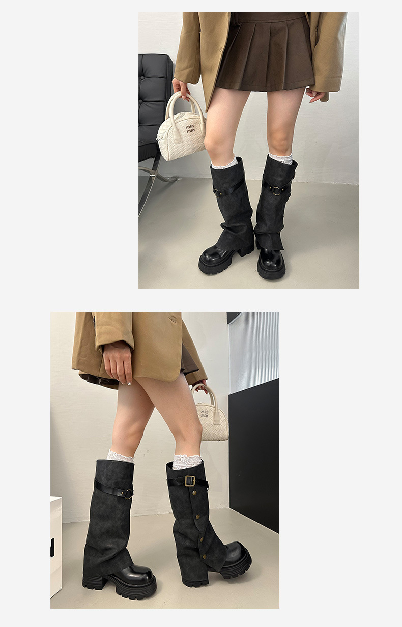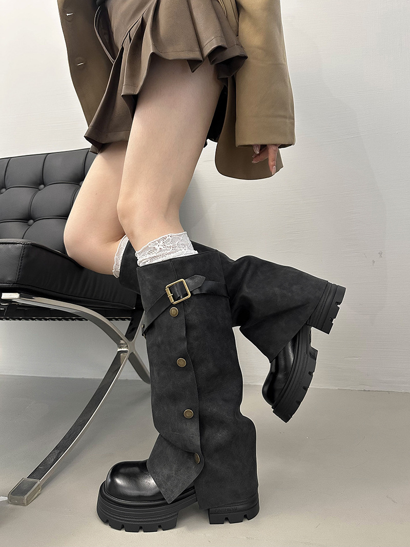 여성용 검은색 두꺼운 밑창 롱부츠, 두꺼운 밑창, 두꺼운 다리, 슬리밍, 큰 튜브 레그부츠, 무릎 높이 기사 부츠스토어 가기