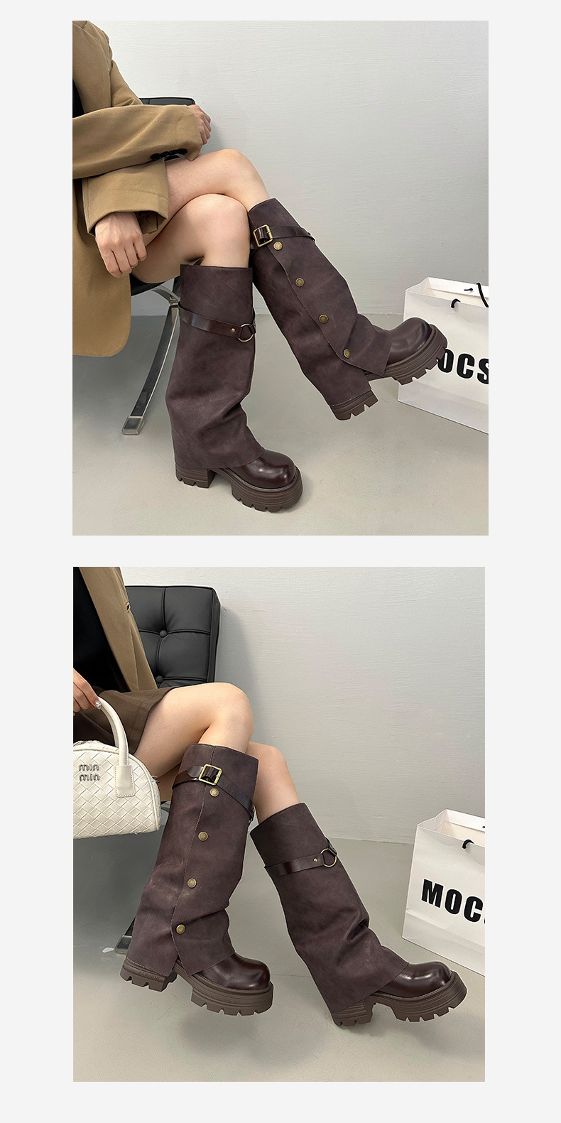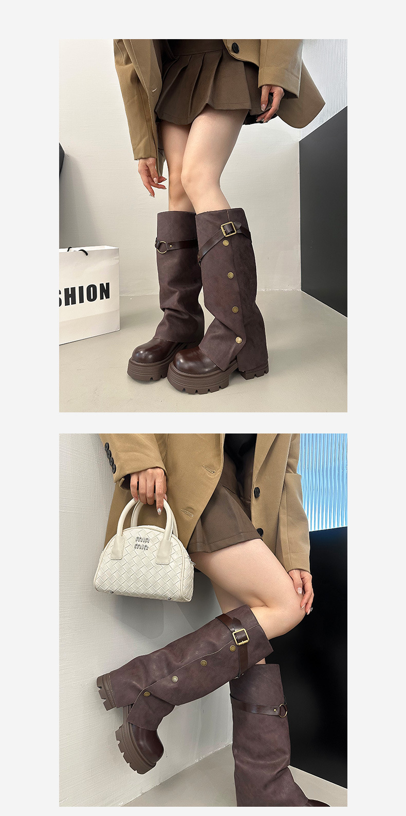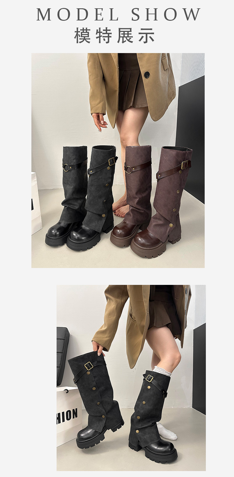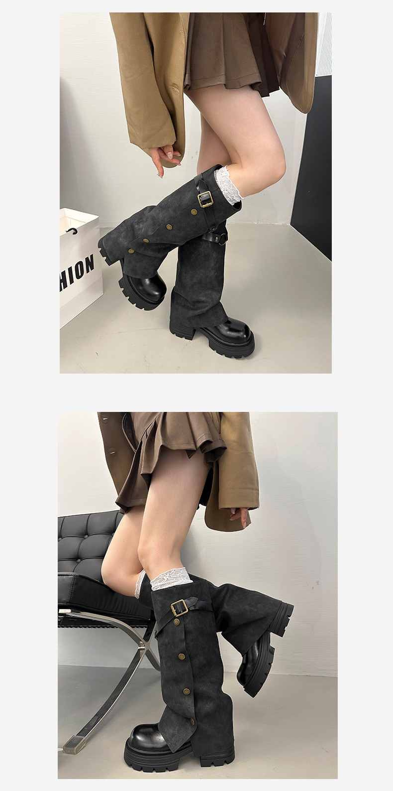 여성용 검은색 두꺼운 밑창 롱부츠, 두꺼운 밑창, 두꺼운 다리, 슬리밍, 큰 튜브 레그부츠, 무릎 높이 기사 부츠스토어 가기