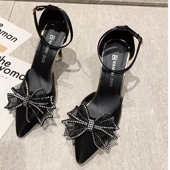 2025년 여름 신상 여성용 리본 버클 하이힐, 유럽 및 미국 연예인 스틸레토 슈즈, 외부 착용용 얕은 구두, 패셔너블한 여성용 신발스토어 가기
