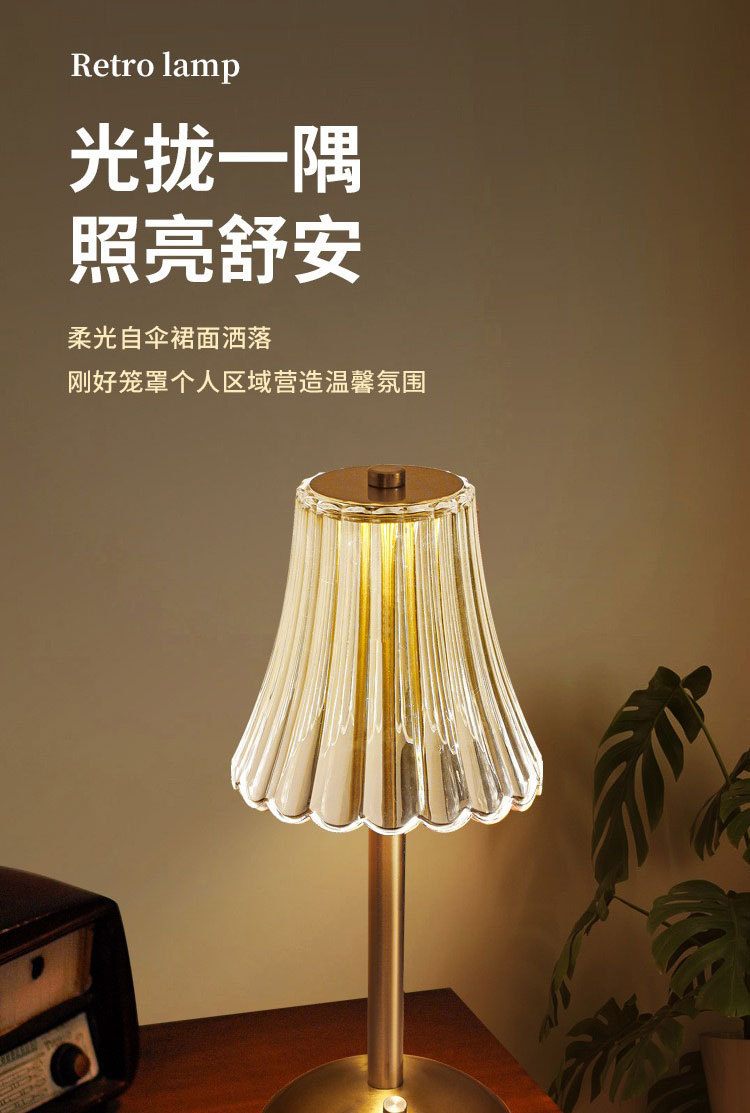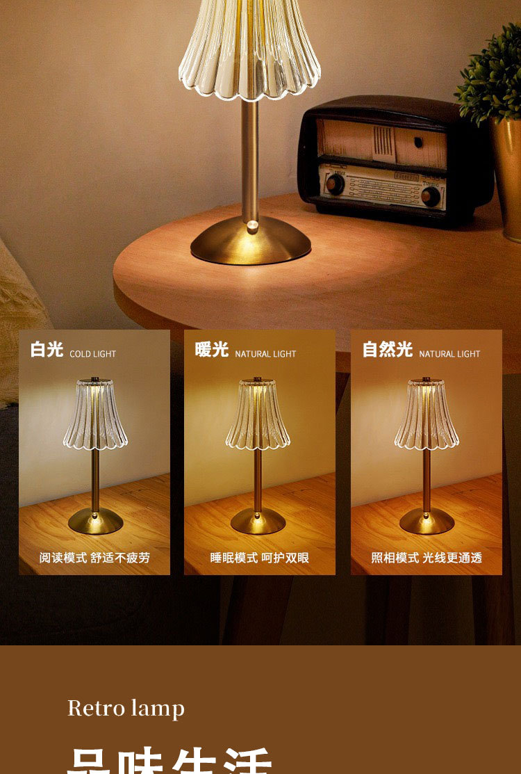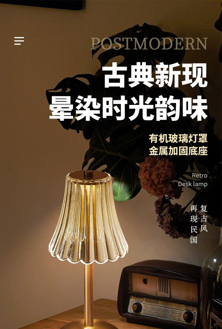 국경 간 크리스탈 복고풍 테이블 램프, 고급 침실 분위기 조명, 라이트 럭셔리 마스터 침실 머리맡 램프, 장식용 충전식 야간 조명