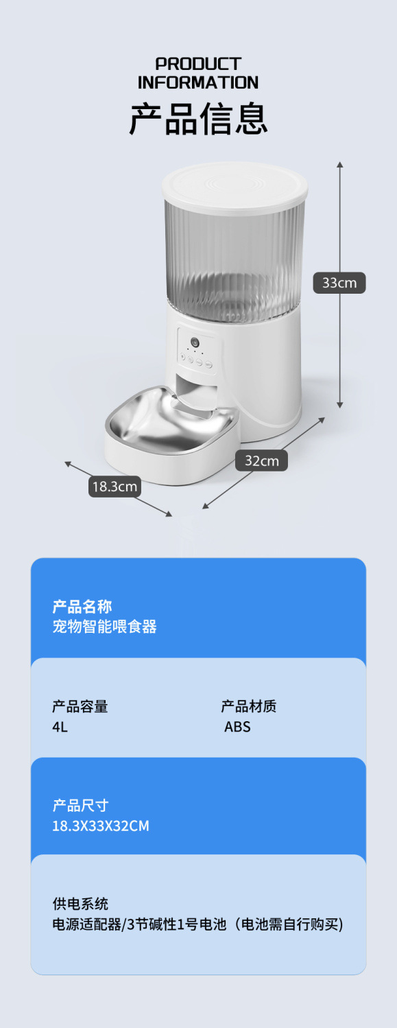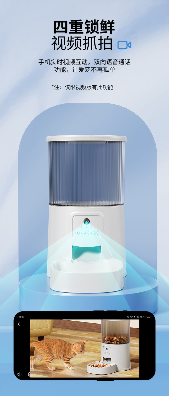 고양이, 애완동물 및 강아지를 위한 정량 및 정량 자동 급식기, 모니터링 기능이 있는 스마트 고양이 및 개 사료 자동 급식기