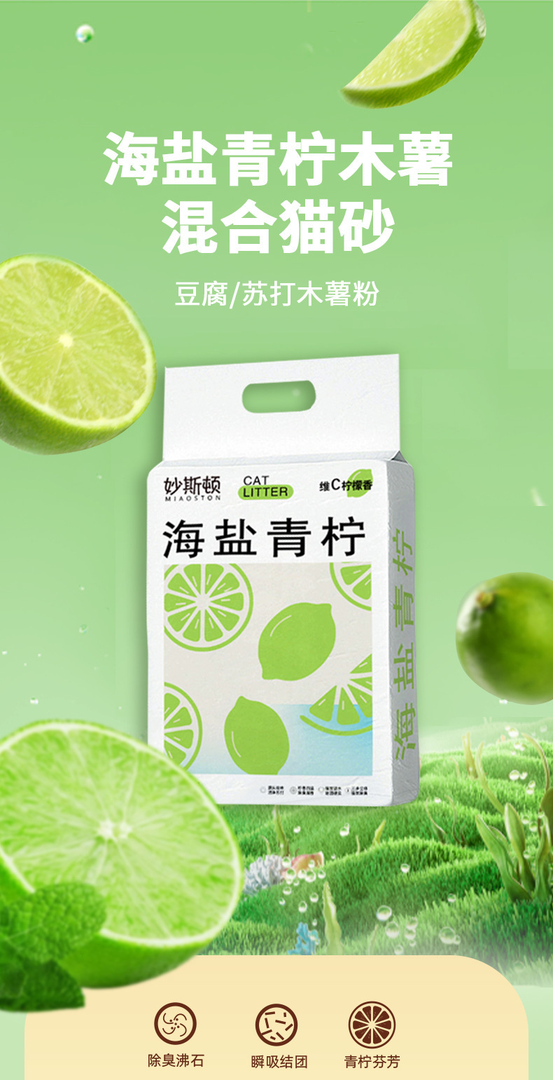 • 바다 소금 라임 카사바 혼합 고양이 모래(베이킹 소다 포함)