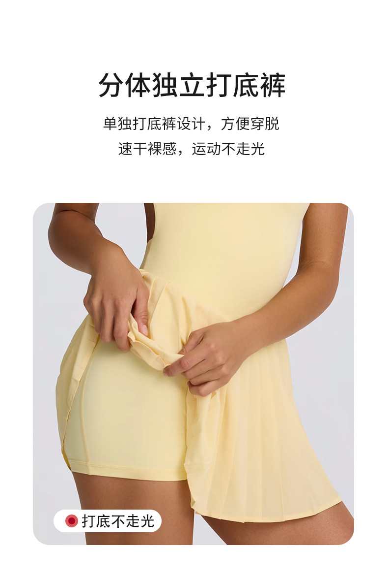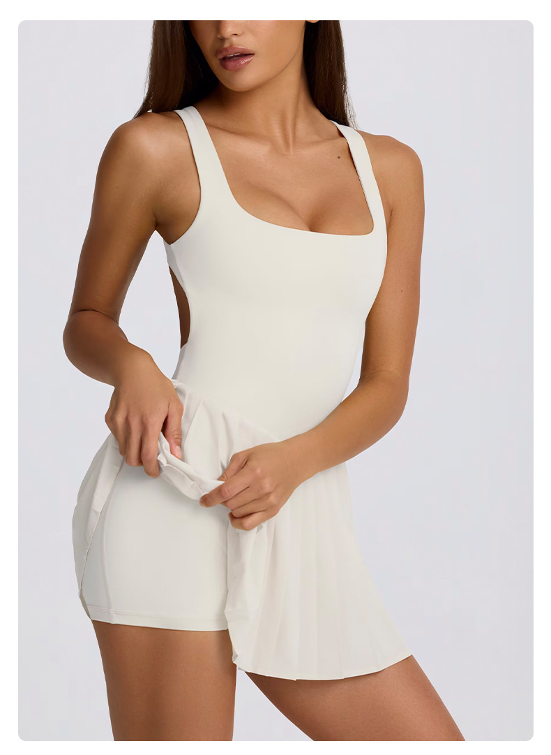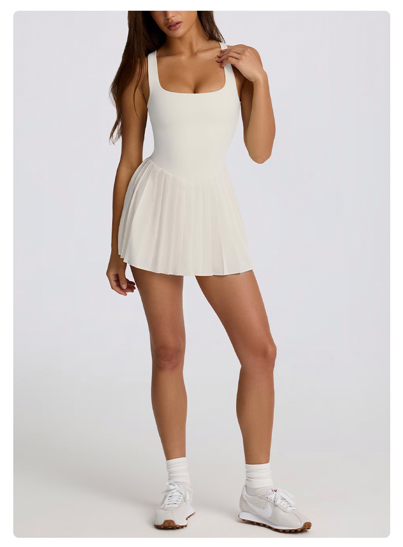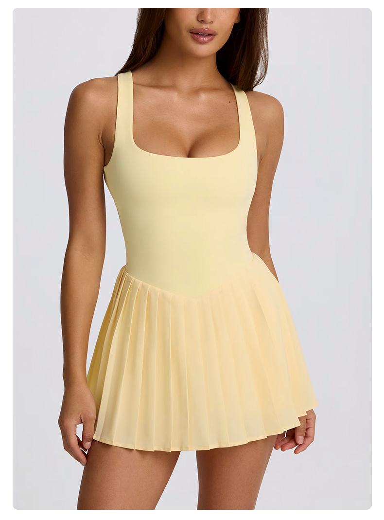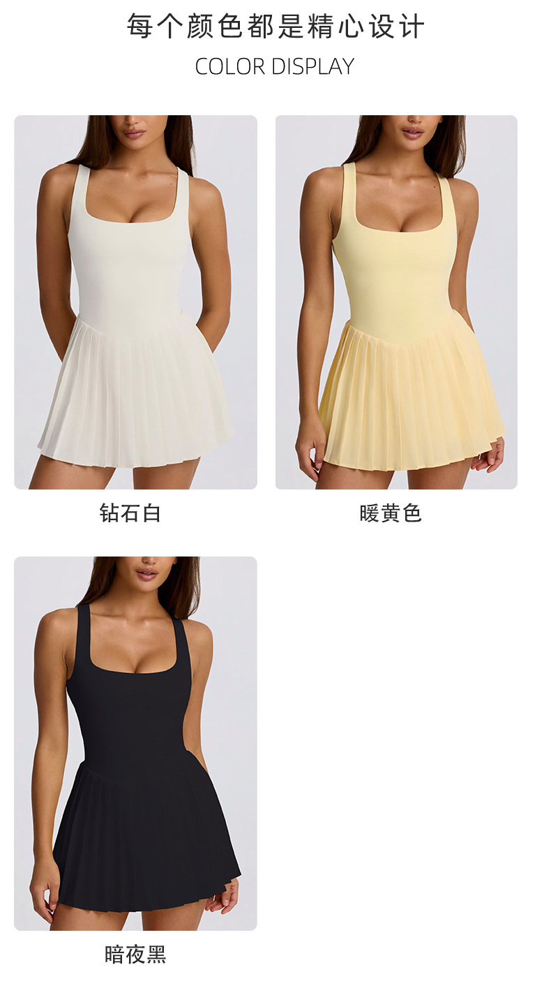 가슴 패드가 있는 크로스보더 누드톤 원피스, 플리츠 스커트, 통기성, 속건성, 스포츠 러닝 베이스레이어, 노출 방지 테니스 스커트 (여성용)