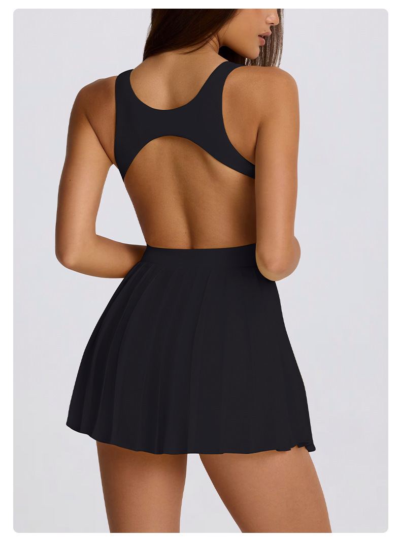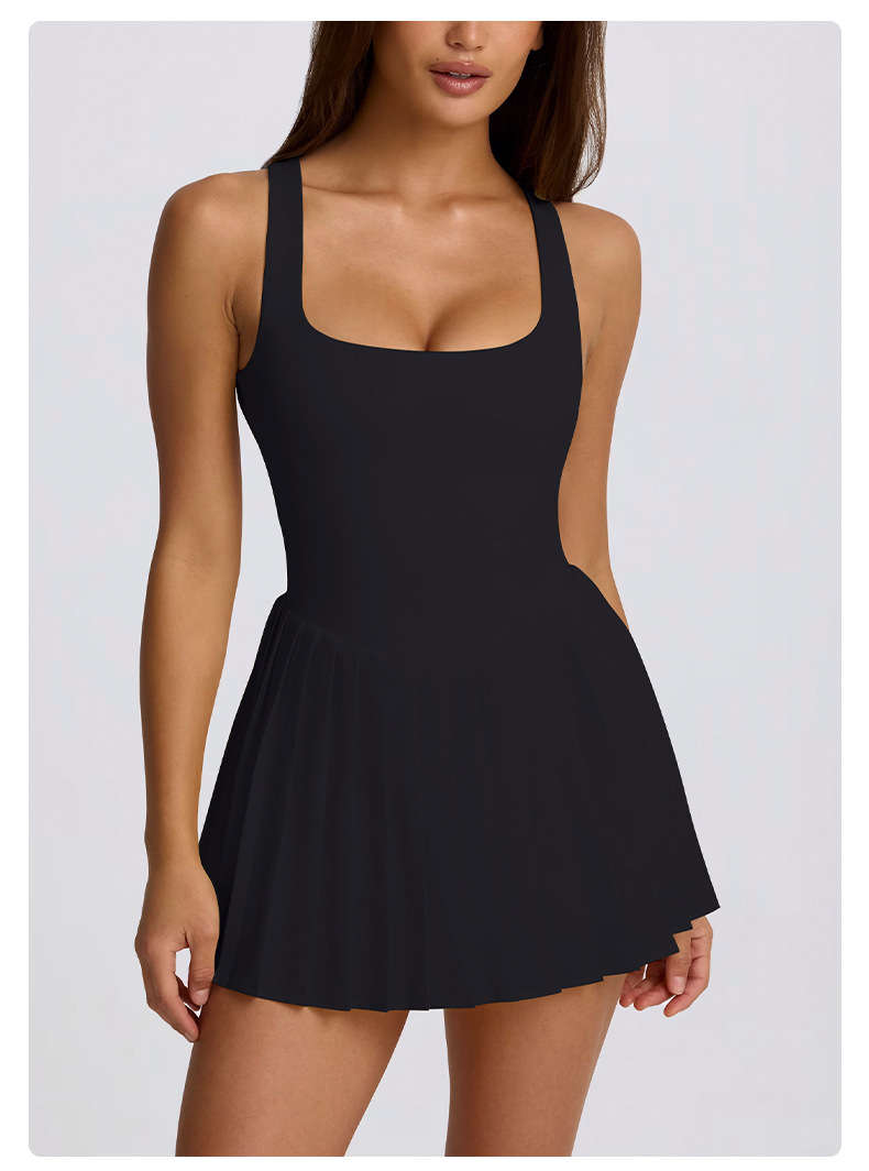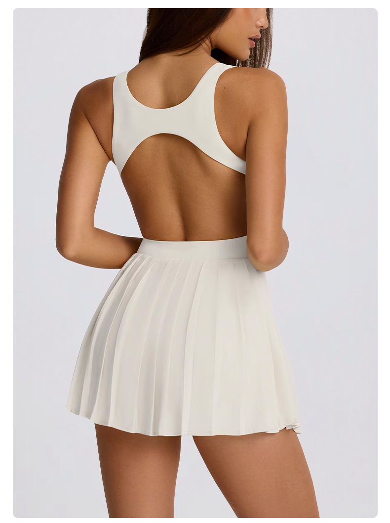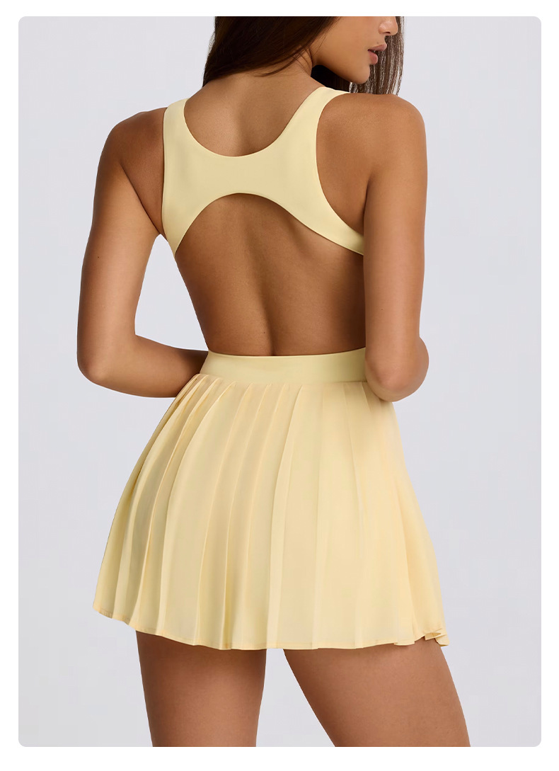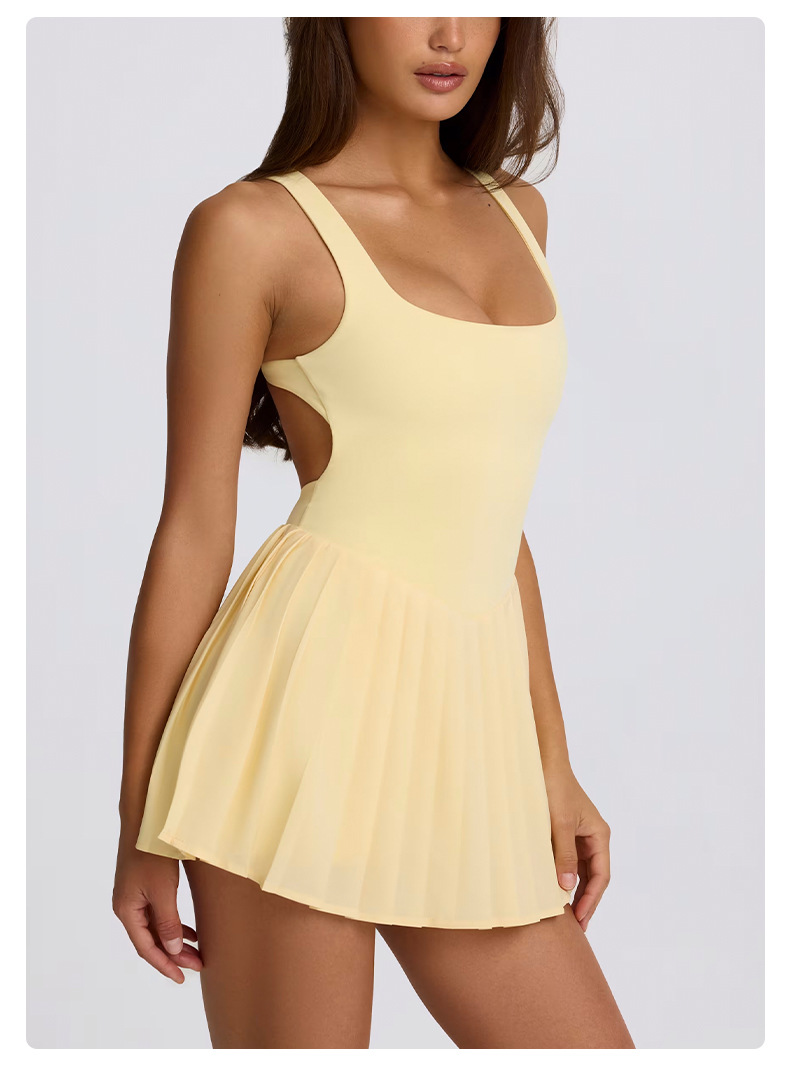가슴 패드가 있는 크로스보더 누드톤 원피스, 플리츠 스커트, 통기성, 속건성, 스포츠 러닝 베이스레이어, 노출 방지 테니스 스커트 (여성용)