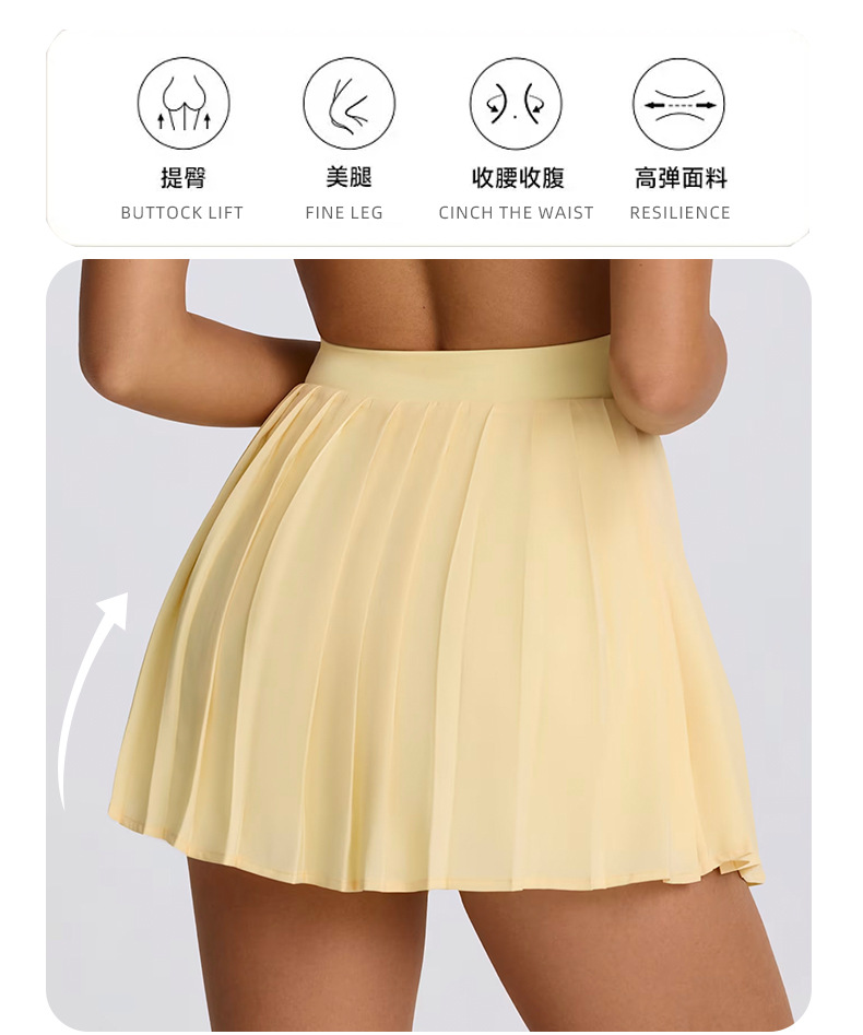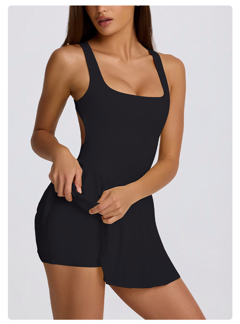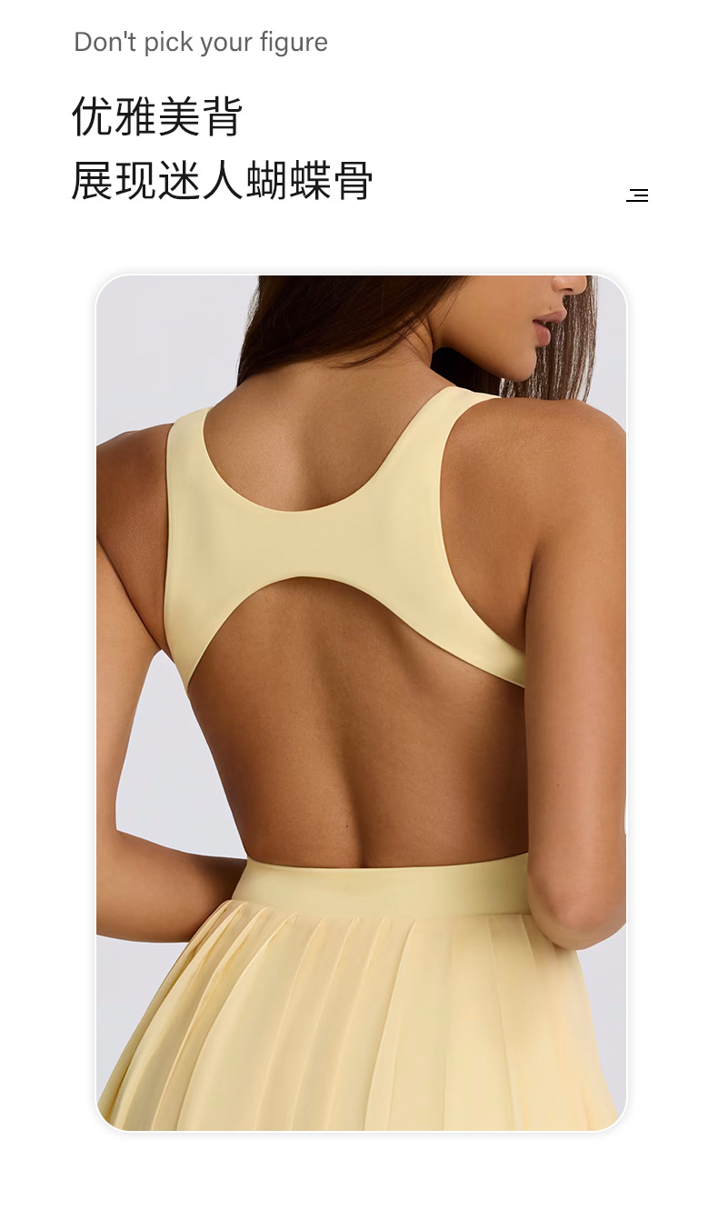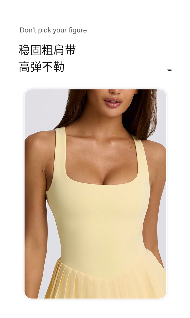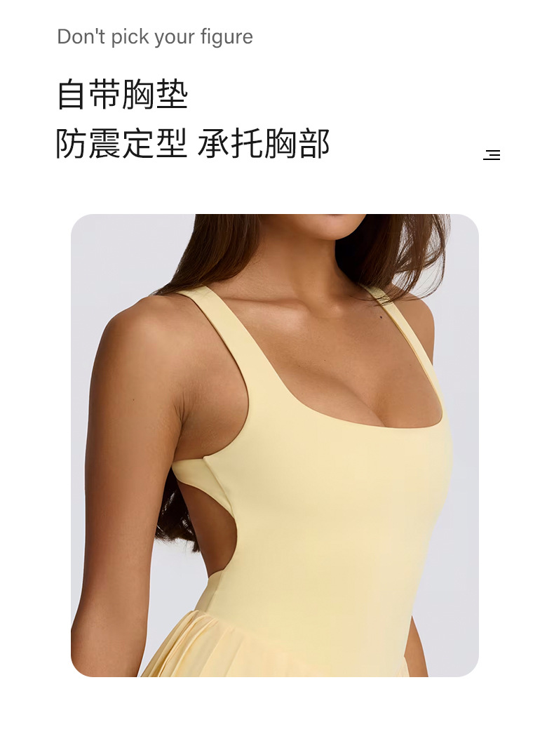 가슴 패드가 있는 크로스보더 누드톤 원피스, 플리츠 스커트, 통기성, 속건성, 스포츠 러닝 베이스레이어, 노출 방지 테니스 스커트 (여성용)