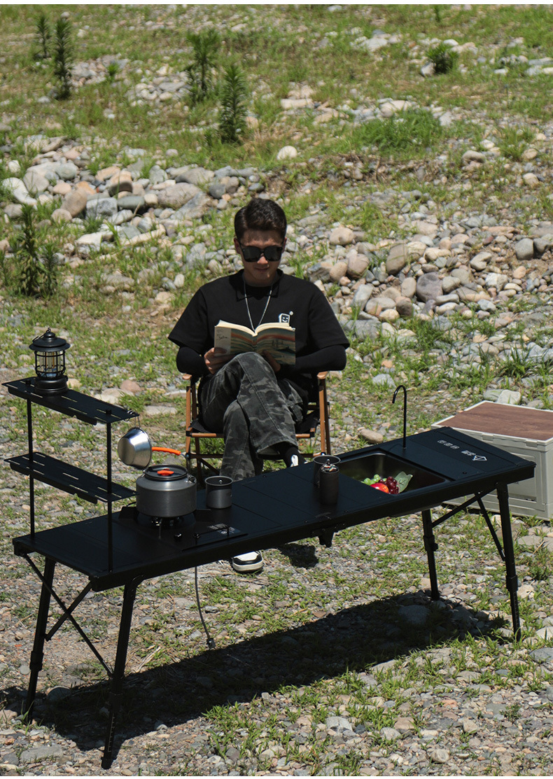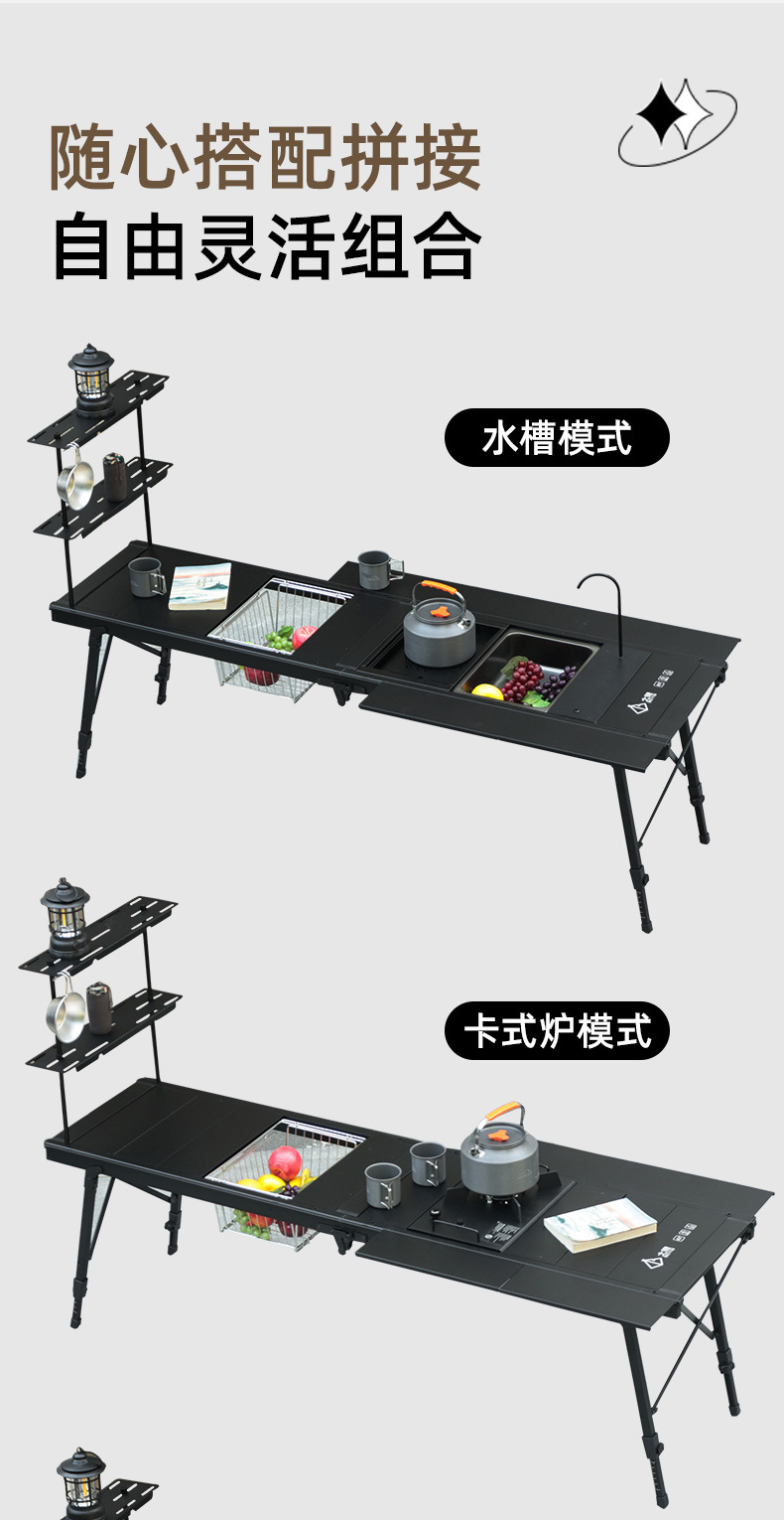 四六单元折叠桌铝合金IGT战术桌户外露营便携式升降多功能野餐桌