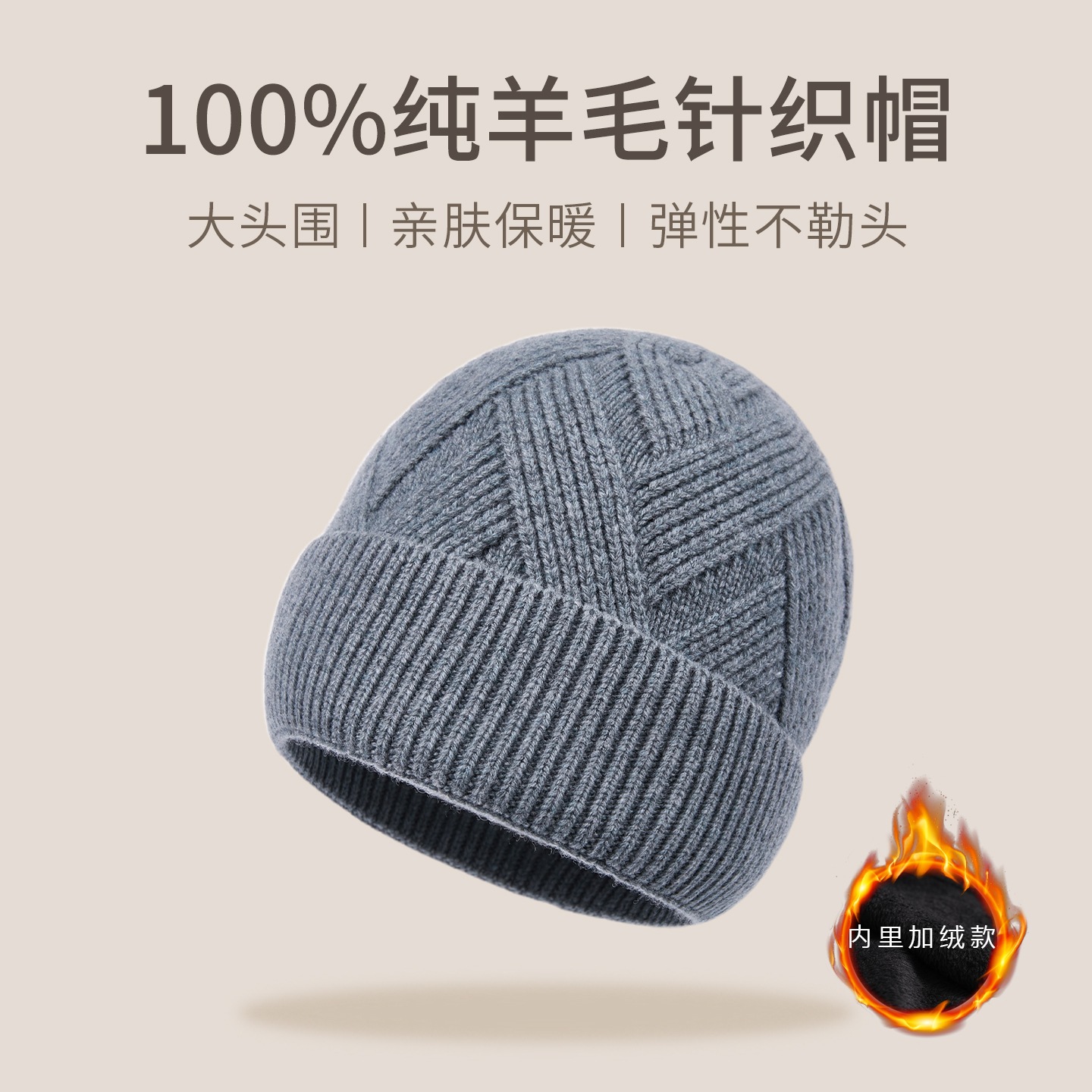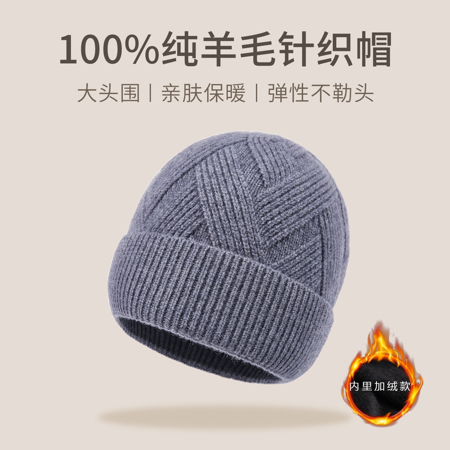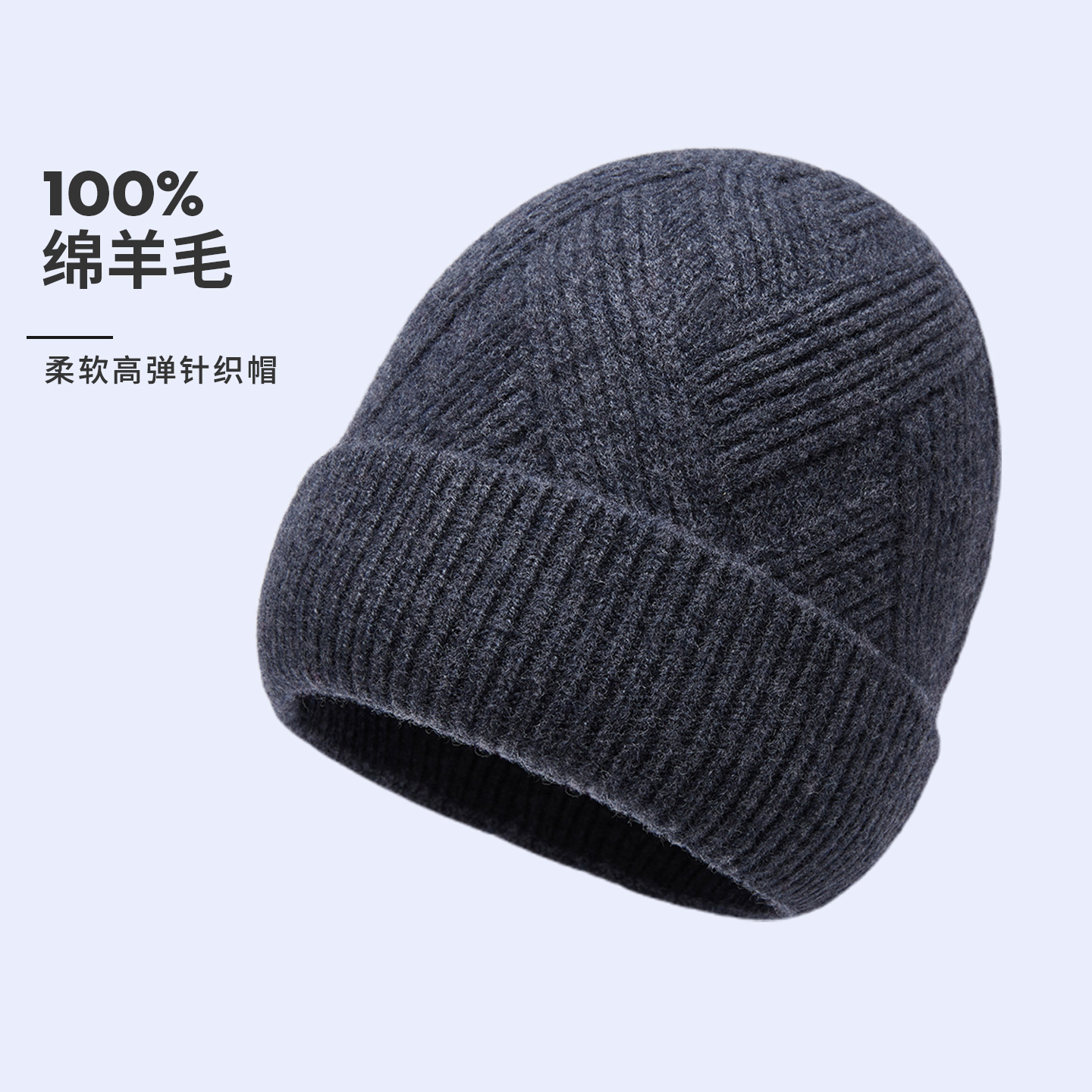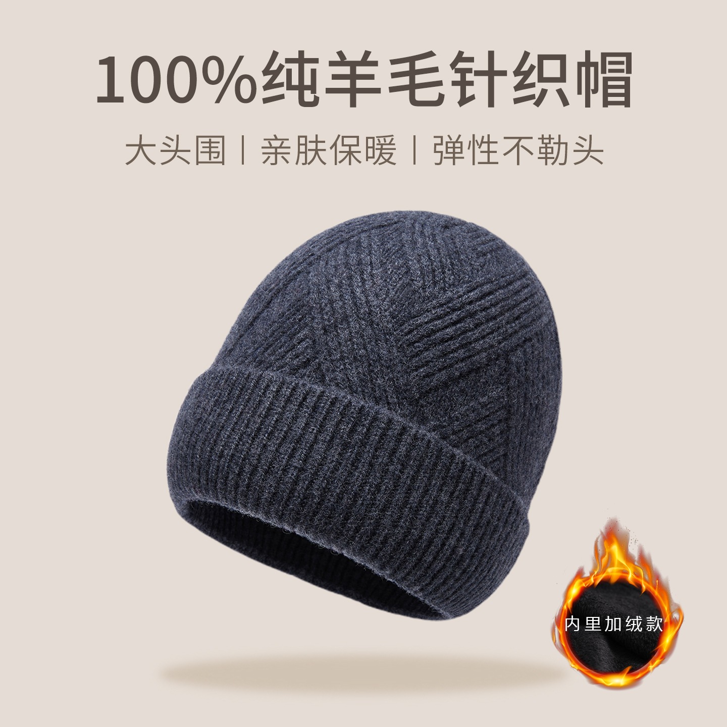 100% 양모 모자 남자 겨울 따뜻한 두꺼운 양모 모자 니트 모자 야외 사이클링 방한 귀 보호 겨울 모자