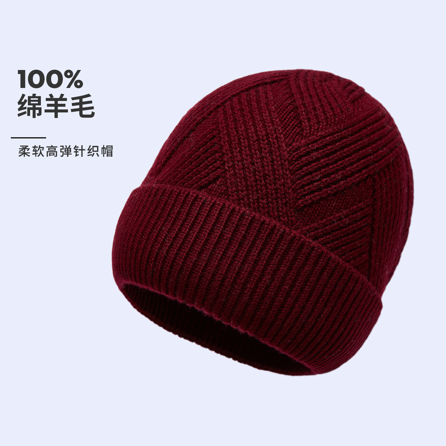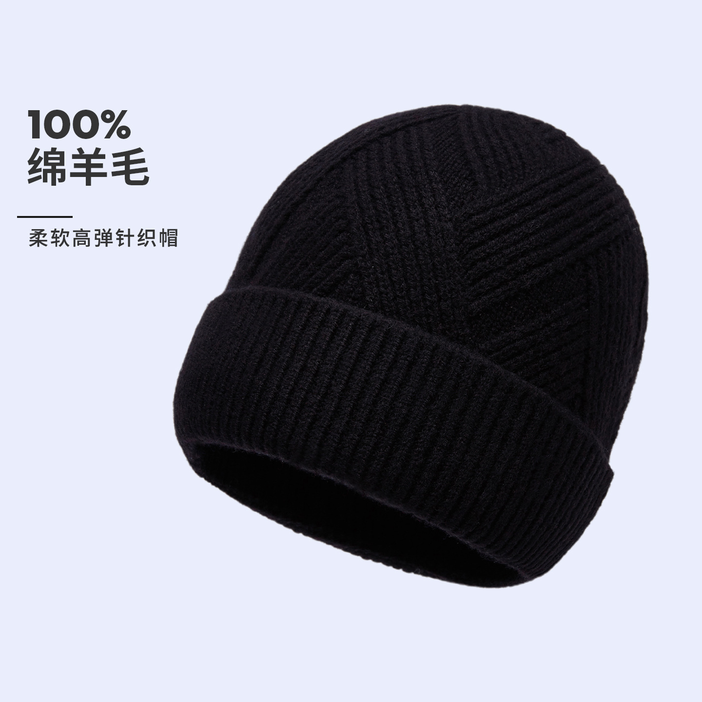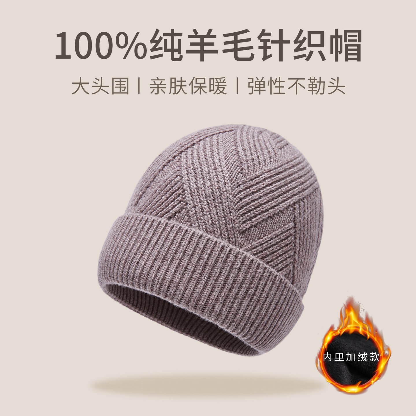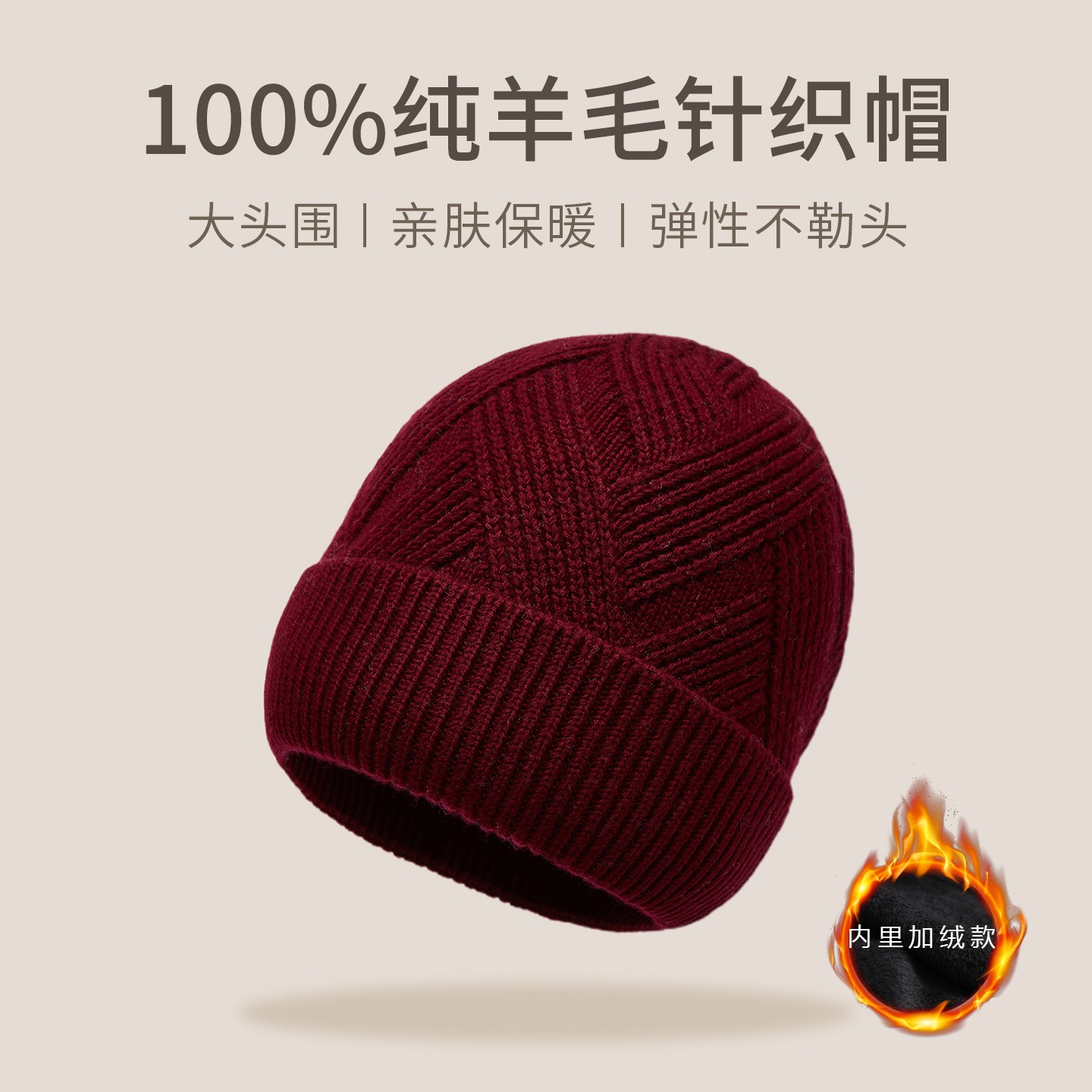 100% 양모 모자 남자 겨울 따뜻한 두꺼운 양모 모자 니트 모자 야외 사이클링 방한 귀 보호 겨울 모자