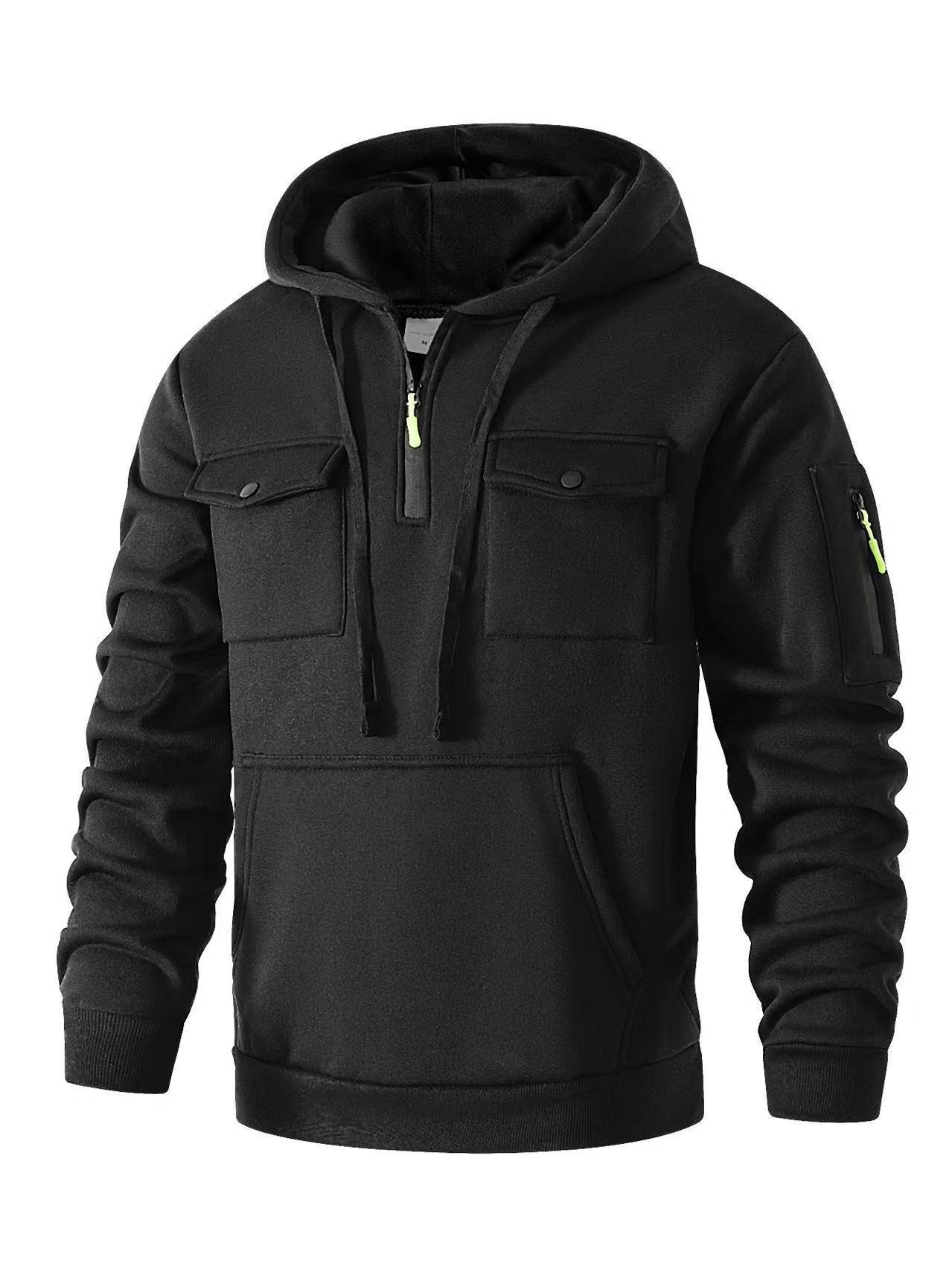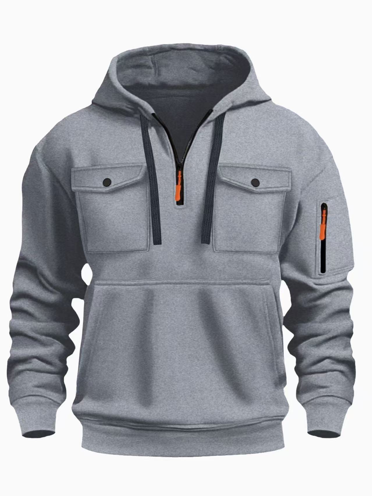 국경 간 인기 가을, 겨울 남성 스웨트 셔츠 Amazon 작업복 포켓 캐주얼 트렌디 지퍼 풀오버 스웨트 셔츠 후드