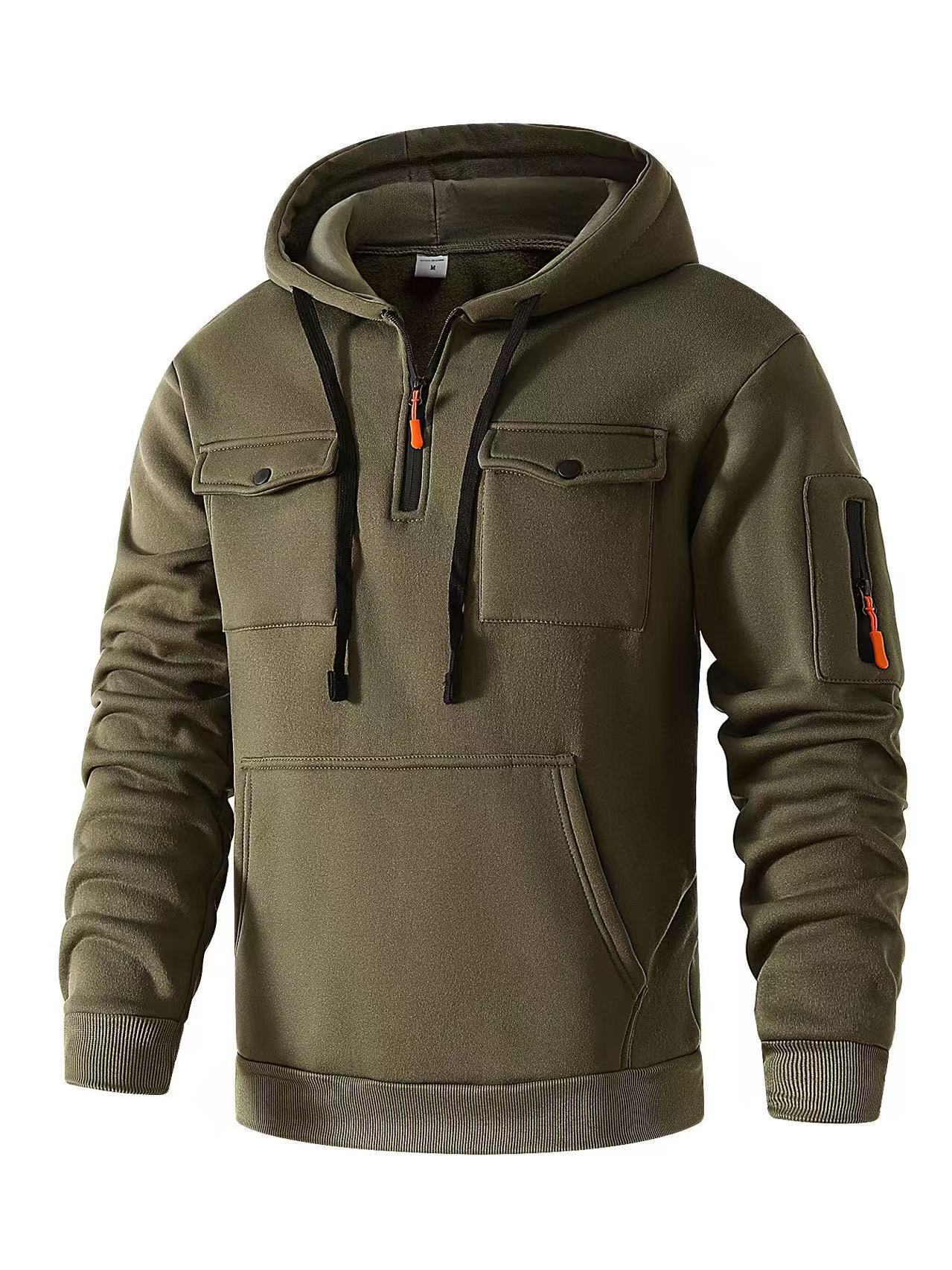 국경 간 인기 가을, 겨울 남성 스웨트 셔츠 Amazon 작업복 포켓 캐주얼 트렌디 지퍼 풀오버 스웨트 셔츠 후드스토어 가기
