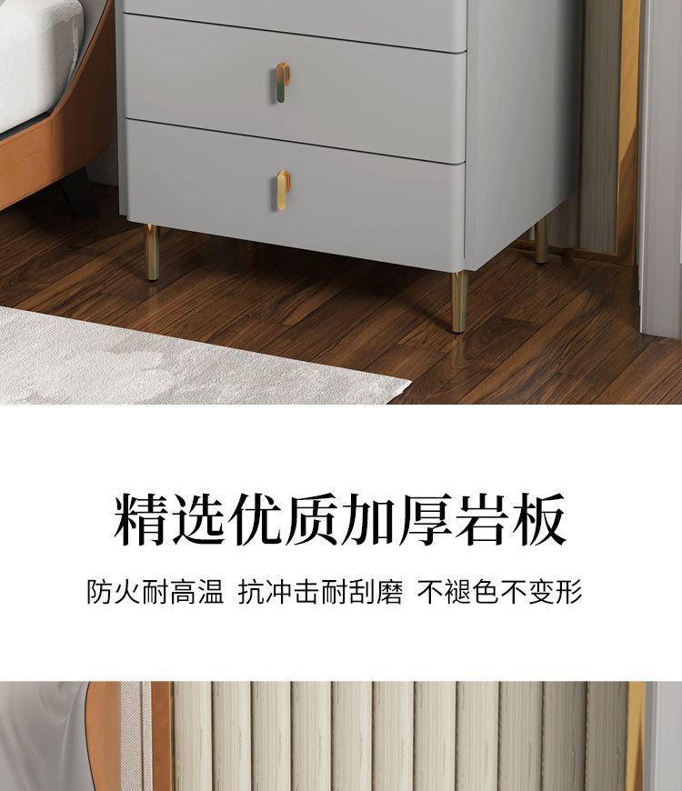 단단한 나무 슬레이트 이탈리아 3층 침대 옆 테이블 침실 홈 간단한 빛 럭셔리 현대 다기능 침대 옆 보관 캐비닛