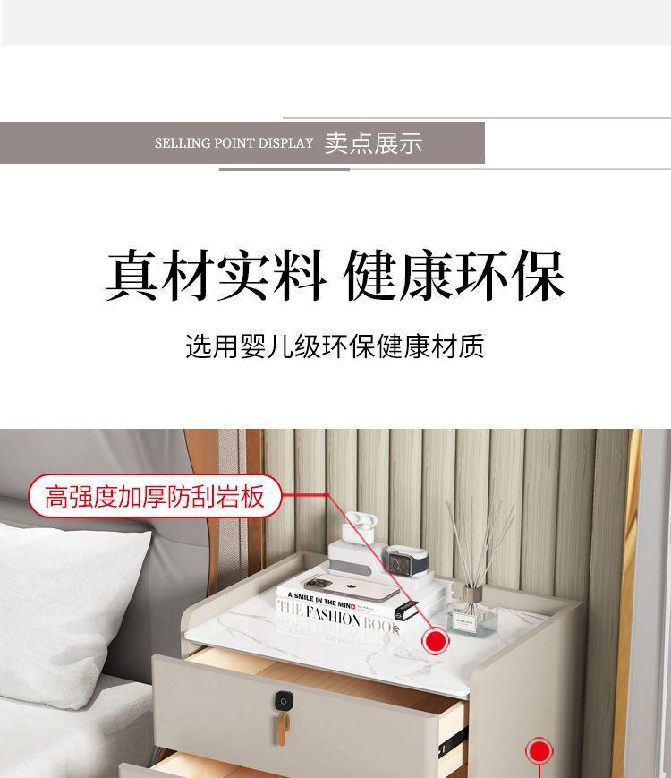 단단한 나무 슬레이트 이탈리아 3층 침대 옆 테이블 침실 홈 간단한 빛 럭셔리 현대 다기능 침대 옆 보관 캐비닛스토어 가기