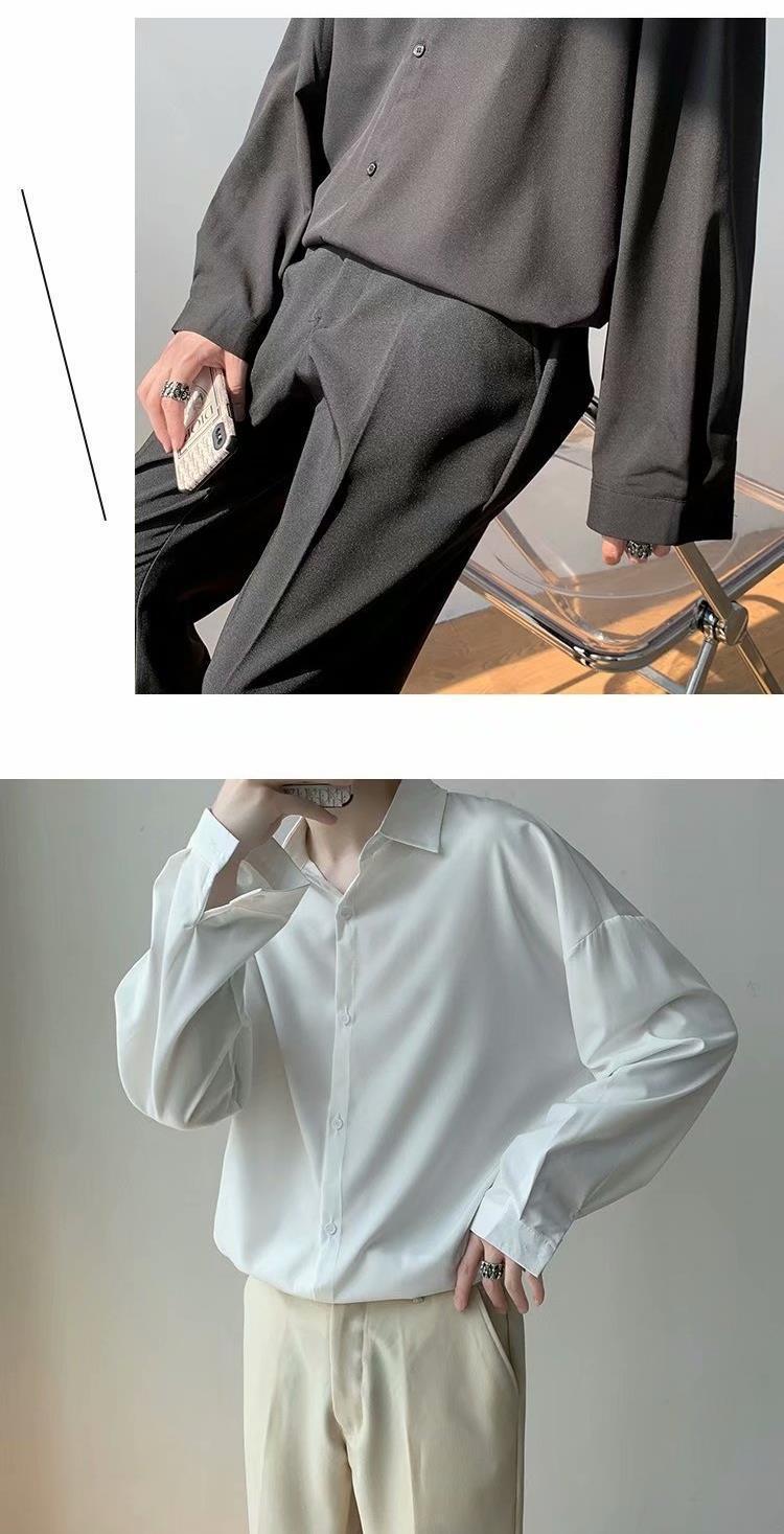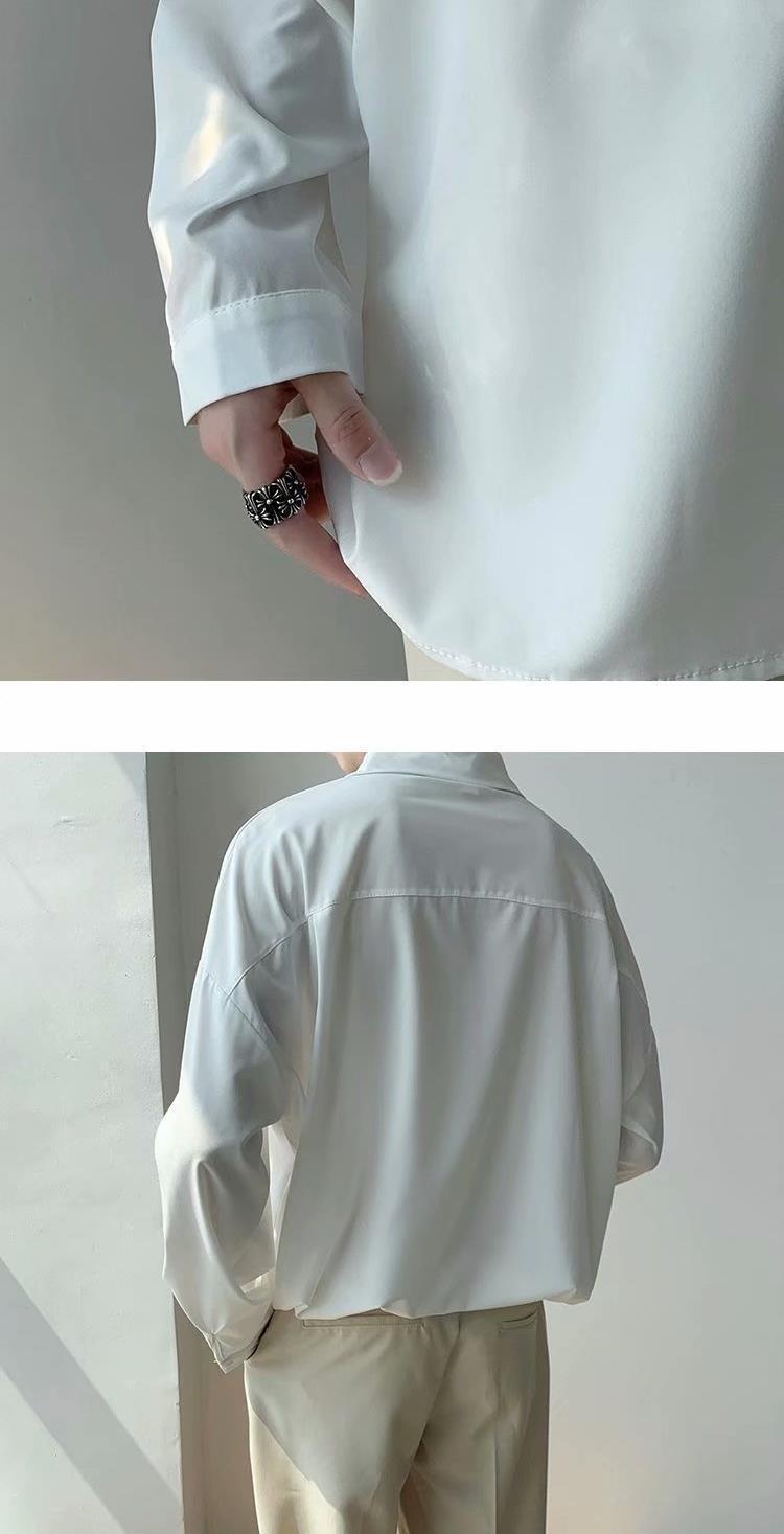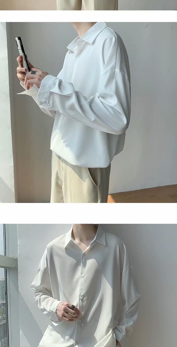 [신선한 선택] 남성용 여름 얇은 가벼운 성숙한 스타일 드레이프 홍콩 스타일 일본식 흰색 느슨한 긴팔 셔츠