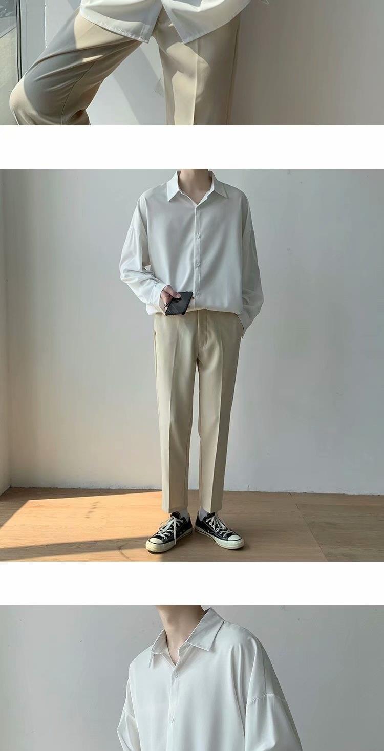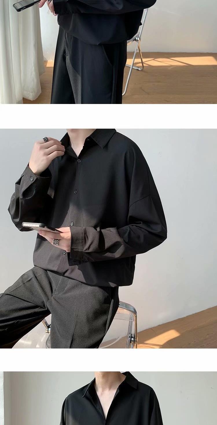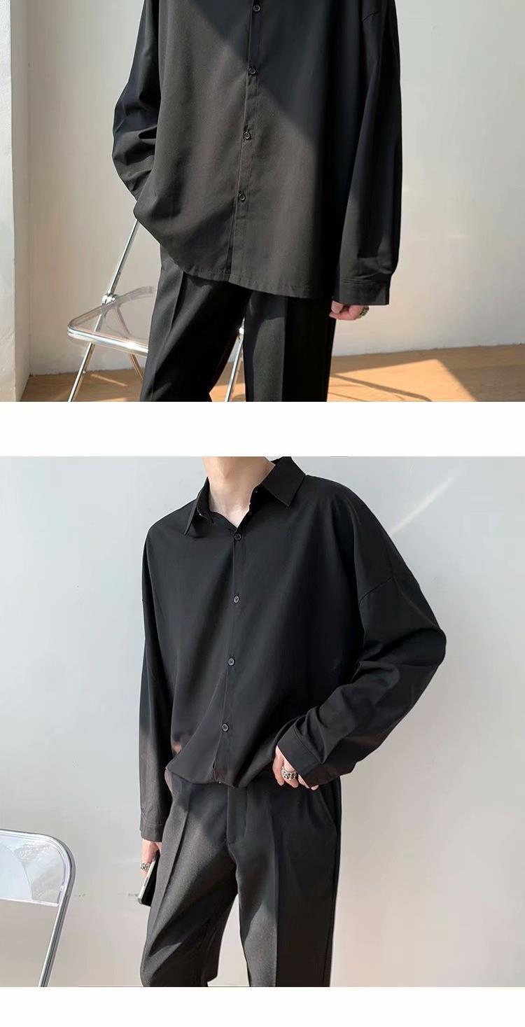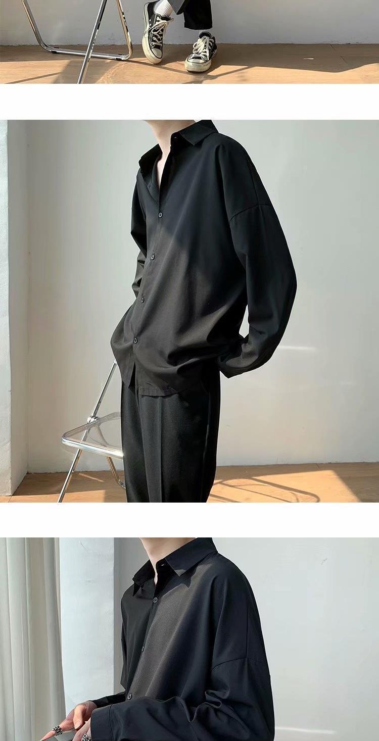 [신선한 선택] 남성용 여름 얇은 가벼운 성숙한 스타일 드레이프 홍콩 스타일 일본식 흰색 느슨한 긴팔 셔츠