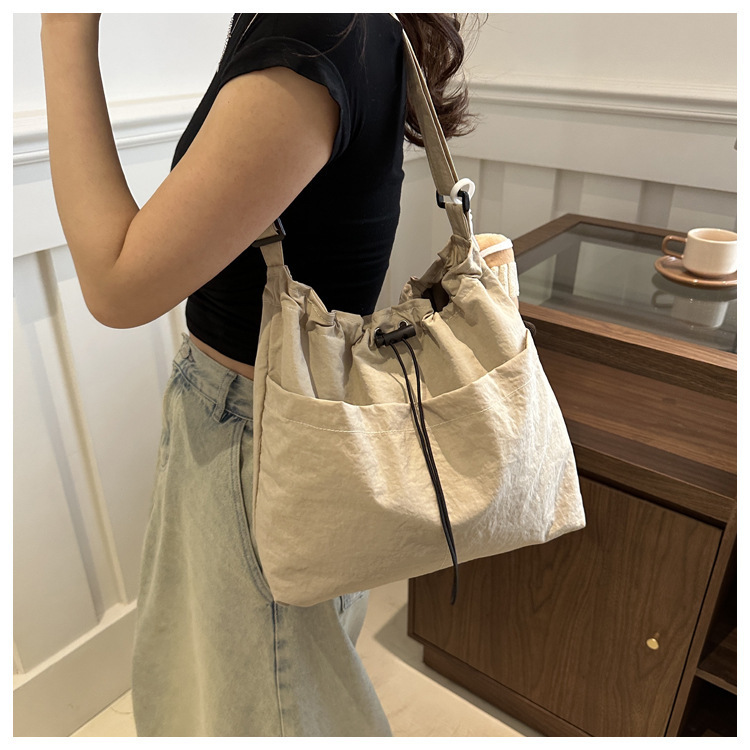 지퍼와 조임끈이 있는 캐주얼한 숄더백, 수업 및 출퇴근용 다용도 대용량 크로스백, 스포츠 토트백 여성용 가방스토어 가기
