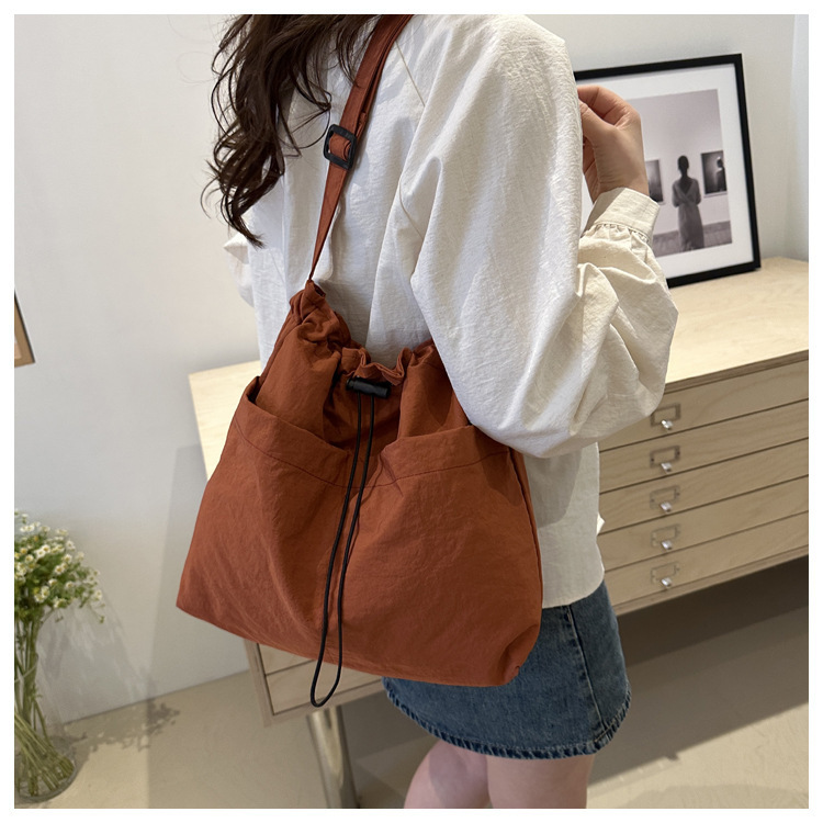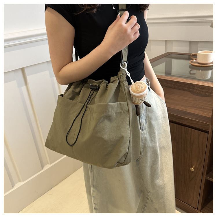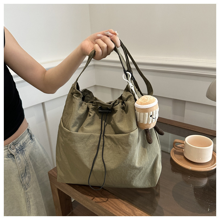 지퍼와 조임끈이 있는 캐주얼한 숄더백, 수업 및 출퇴근용 다용도 대용량 크로스백, 스포츠 토트백 여성용 가방
