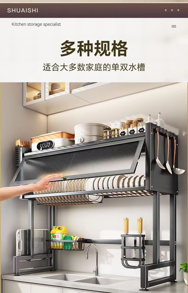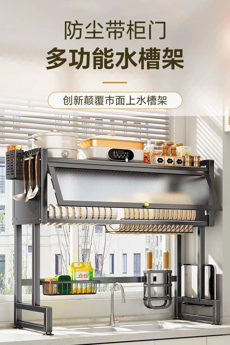 厨房水置物架台面碗碟水池碗柜多功能防尘带柜门碗盘收纳沥水架