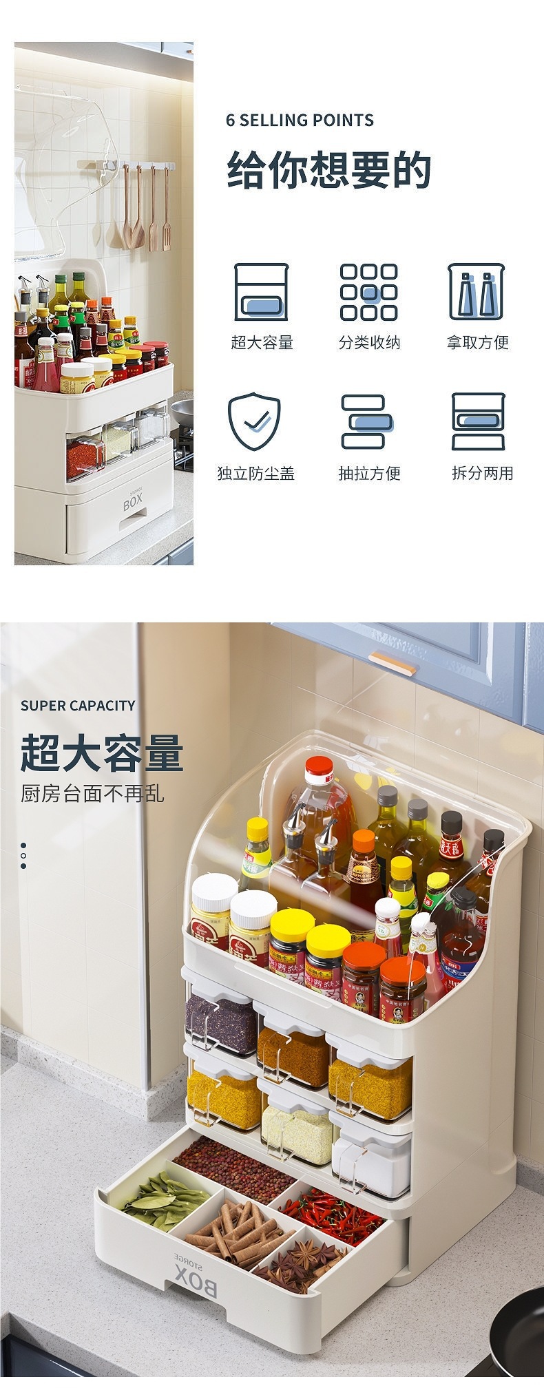 • [플래그십 모델] 대용량 + 독립형 조미료 상자 6개.