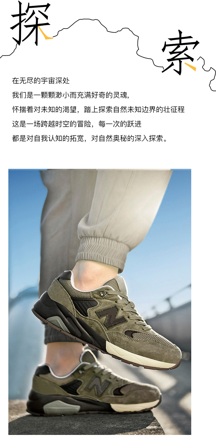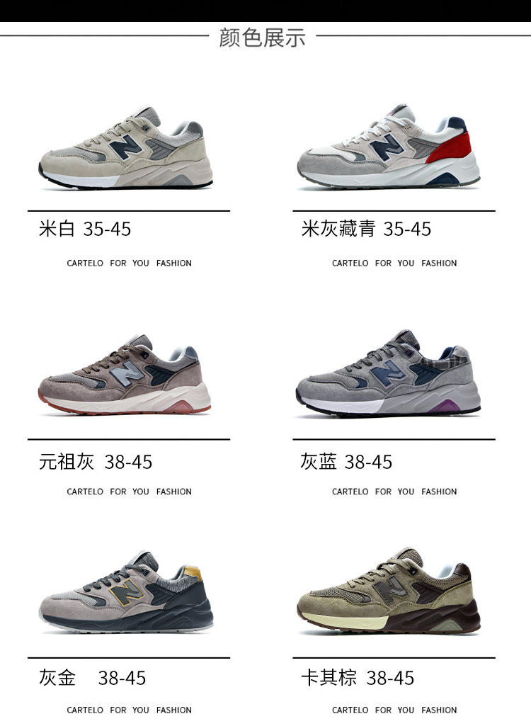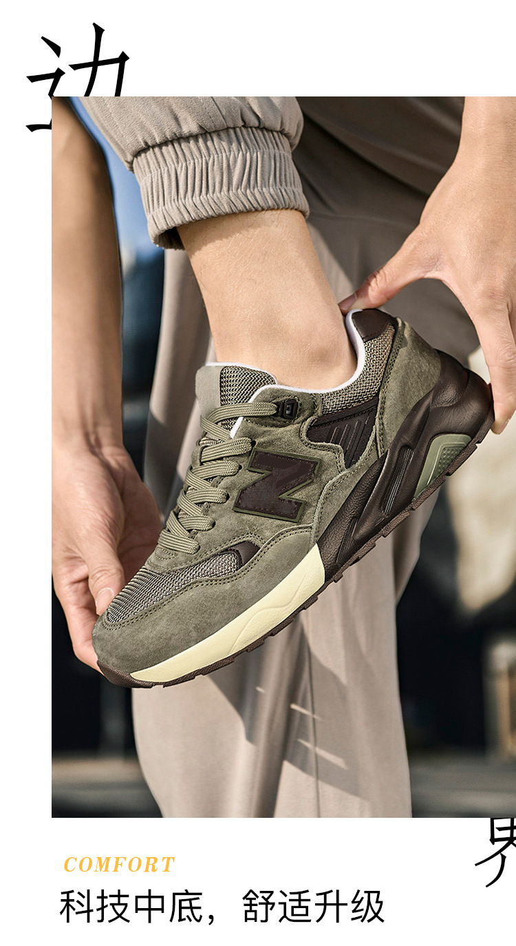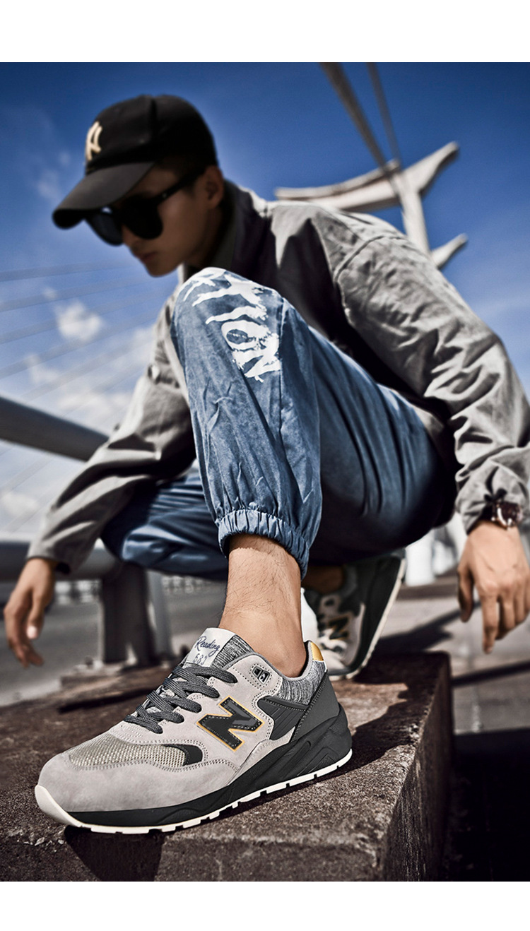 엄선된 남성용 통기성 런닝화, 정품, 냄새방지, 가볍고 캐주얼한, 여성 및 커플용, 공식 모델 580, 뉴발란스