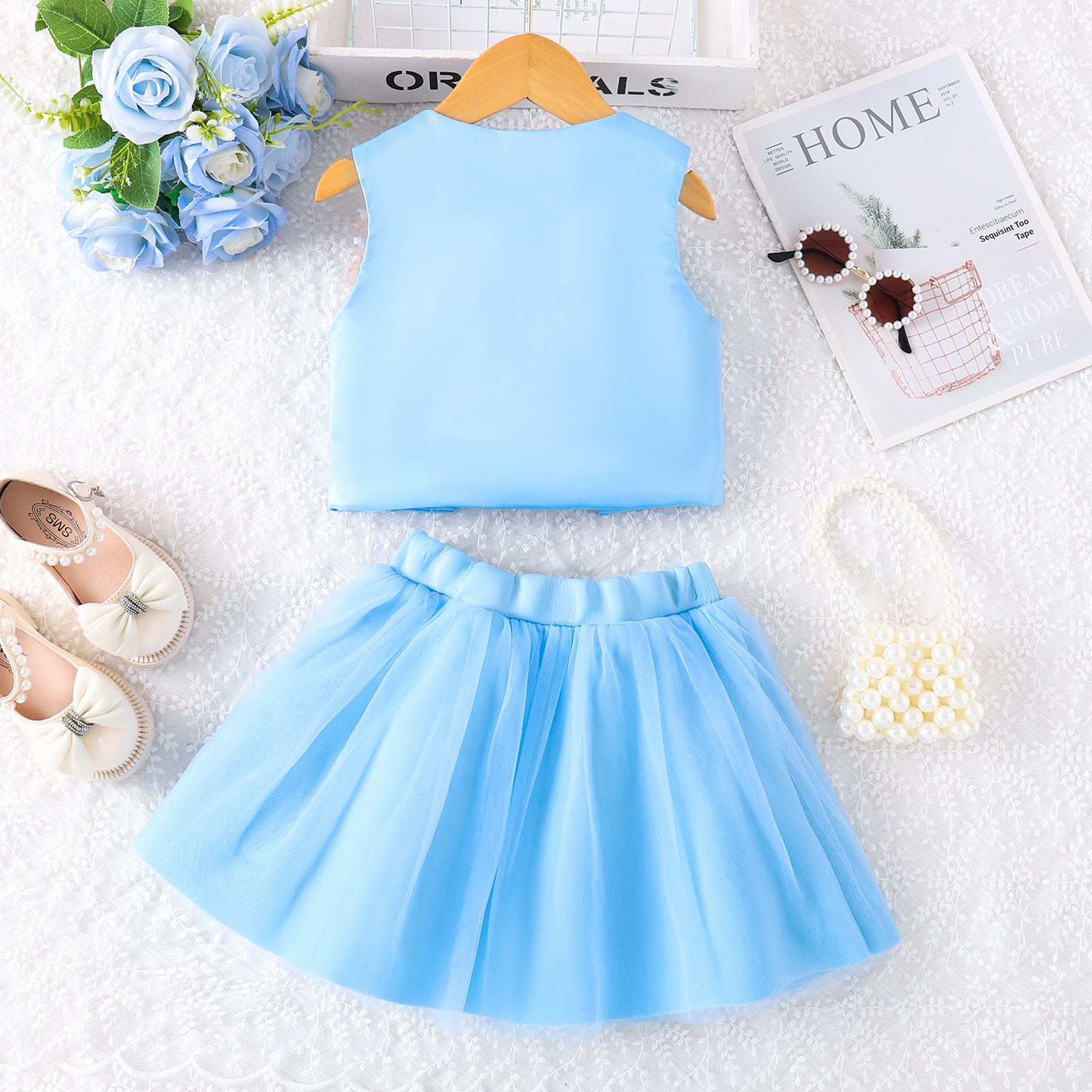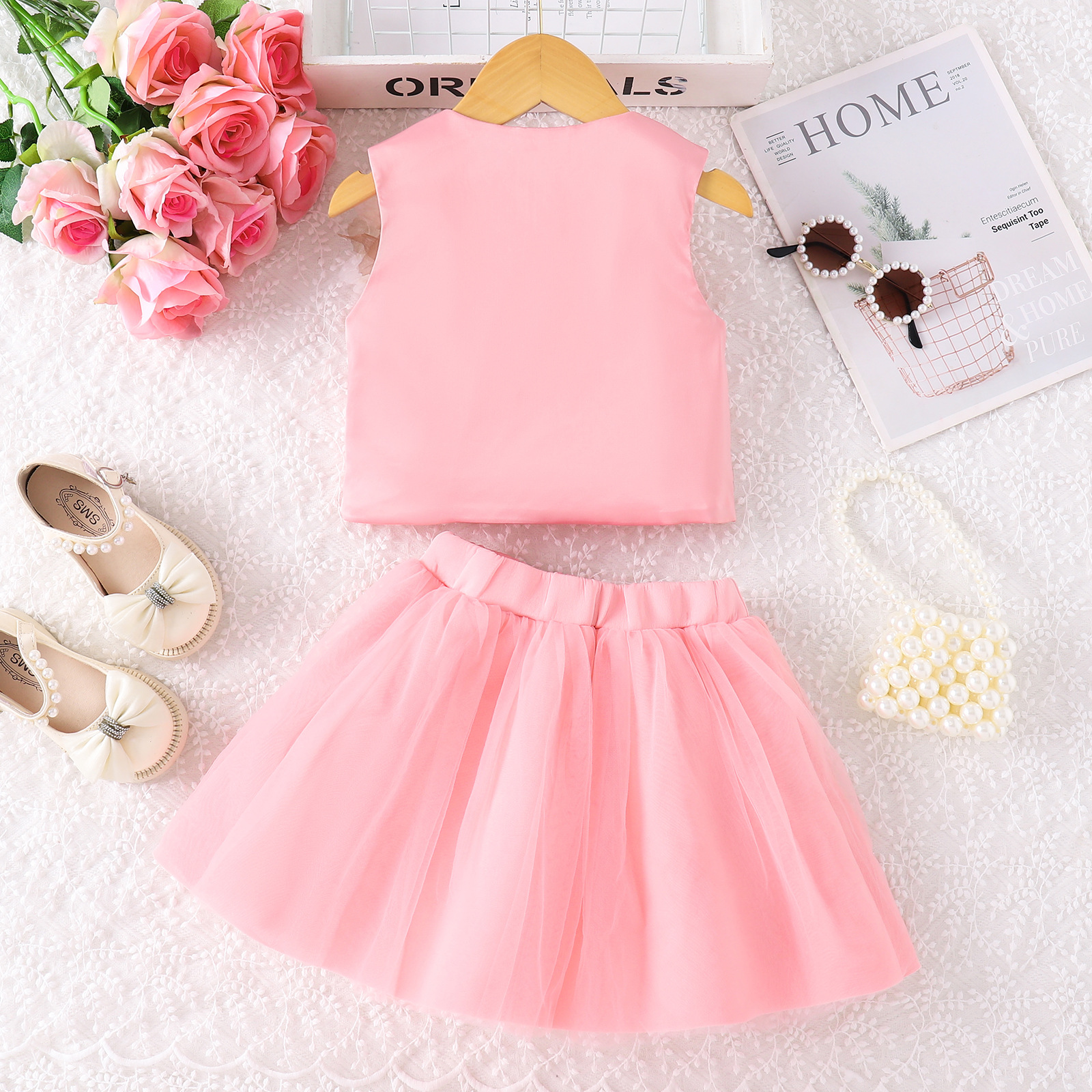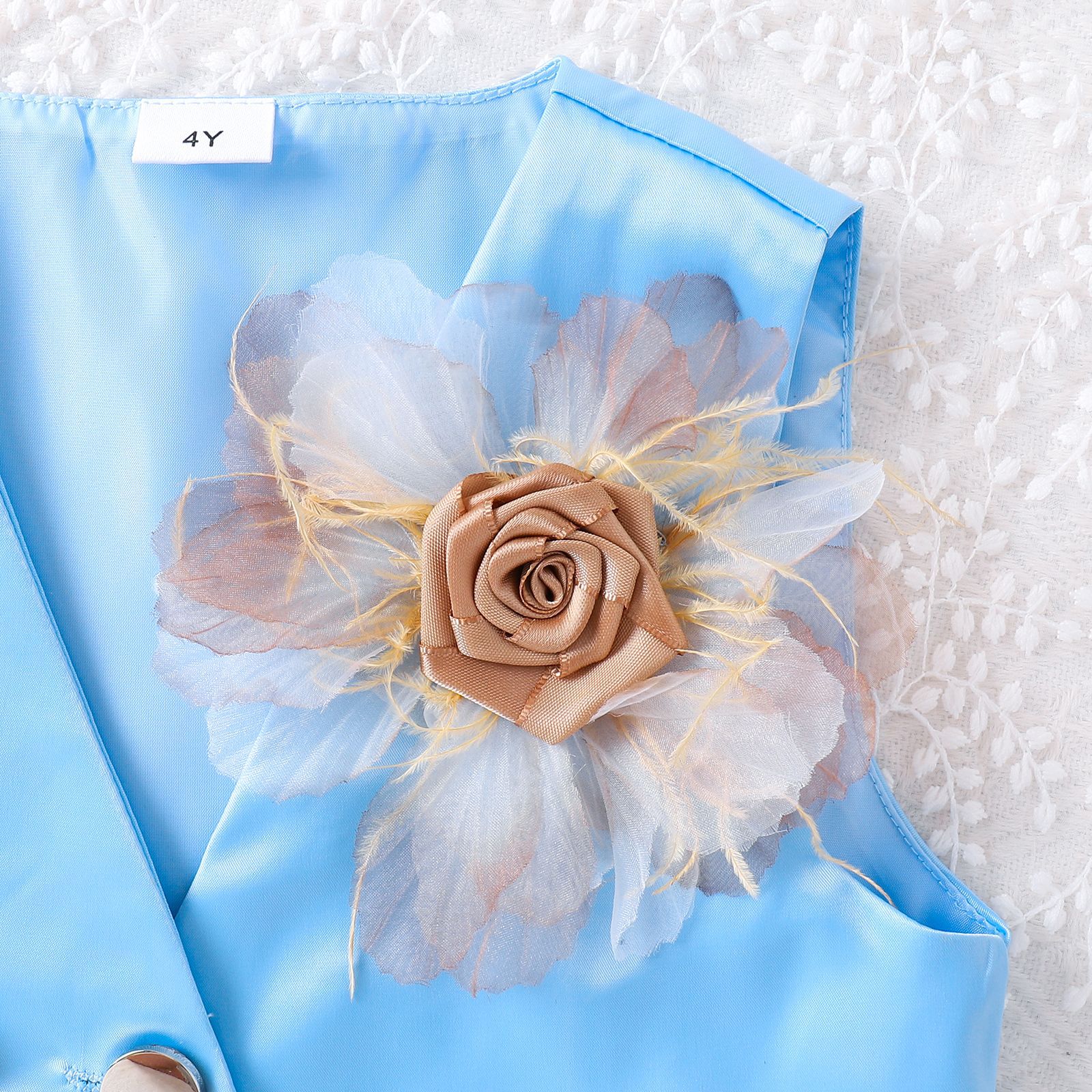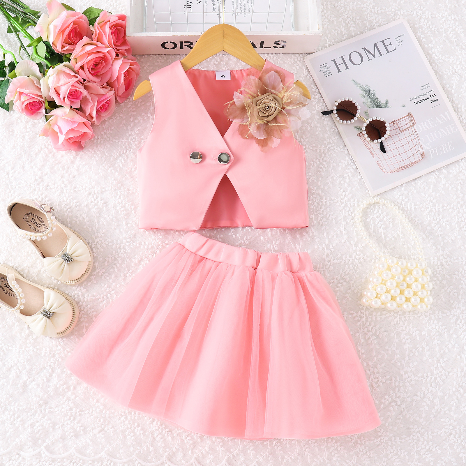 아마존 국경 간 대외 무역 유럽과 미국 어린이 입체 꽃 정장 조끼 메쉬 공주 드레스 투피스 세트