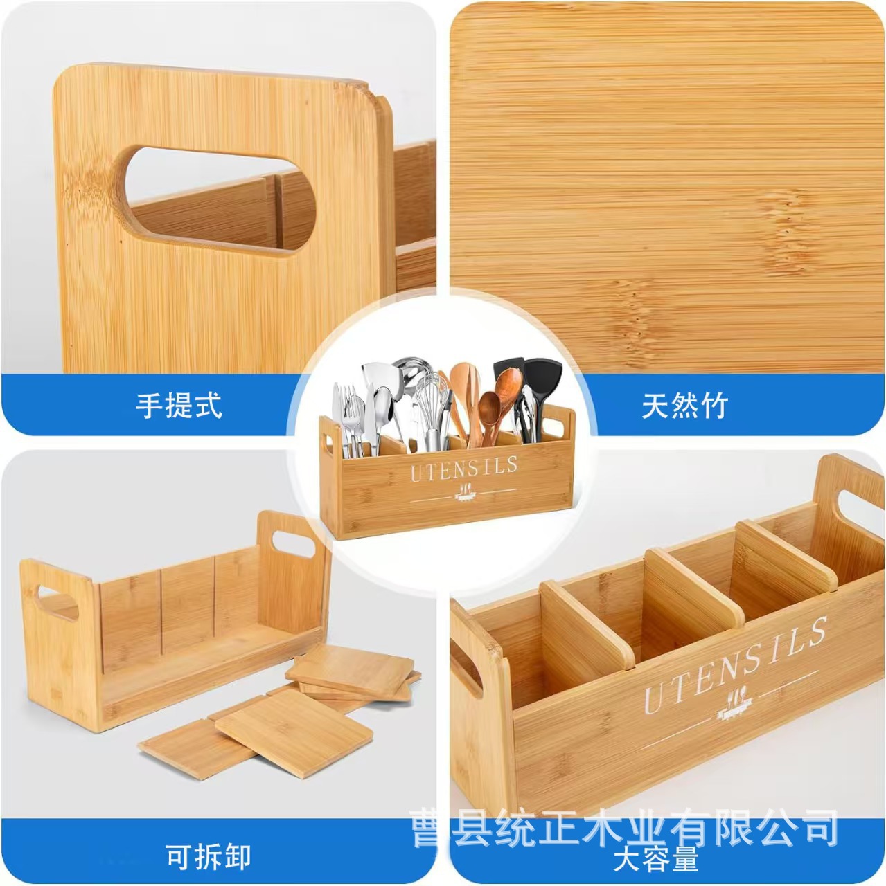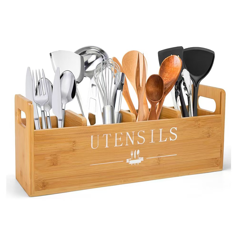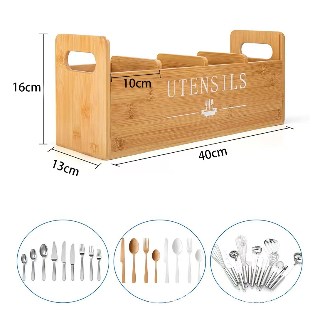 주방 데스크탑 잡화 보관 상자 칼, 포크 및 식기 나무 상자 구획 보관 상자 창의적인 휴대용 정리 나무 상자