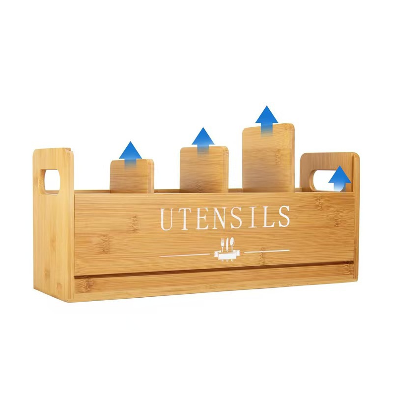 주방 데스크탑 잡화 보관 상자 칼, 포크 및 식기 나무 상자 구획 보관 상자 창의적인 휴대용 정리 나무 상자스토어 가기