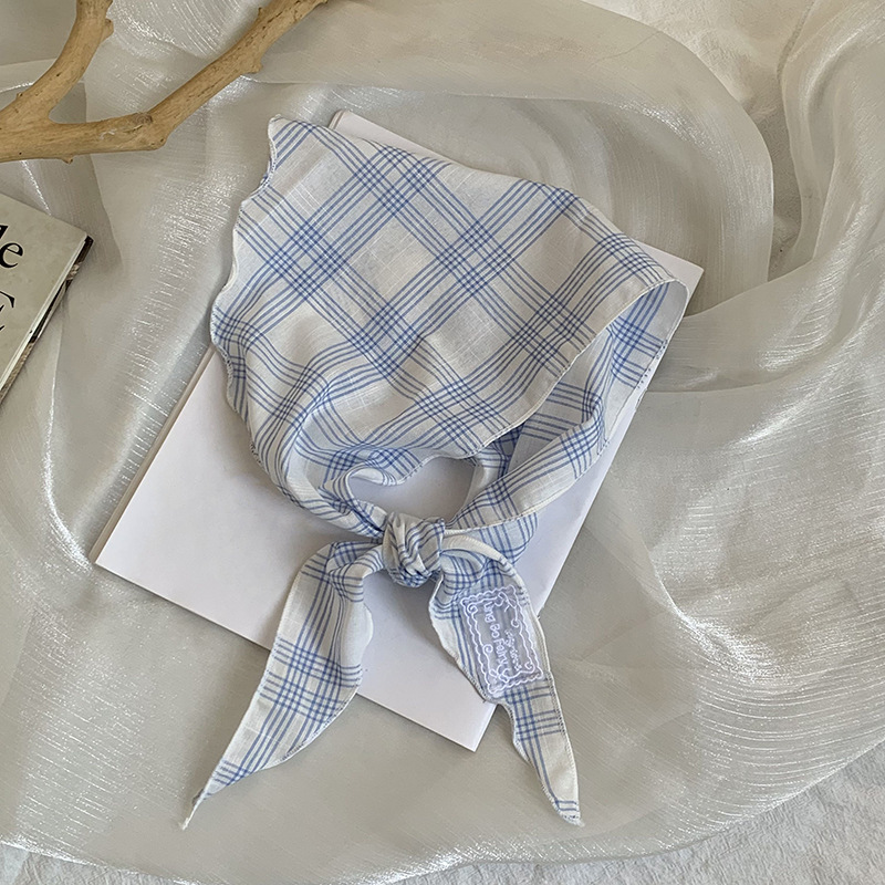 여성용 삼각 스카프 일본 복고풍 바오터우 터번 머리띠 한국 다용도 인스 면 및 린넨 격자 무늬 실크 스카프 허리 커튼스토어 가기