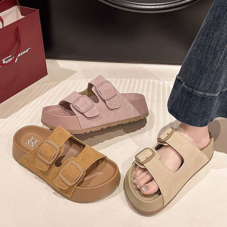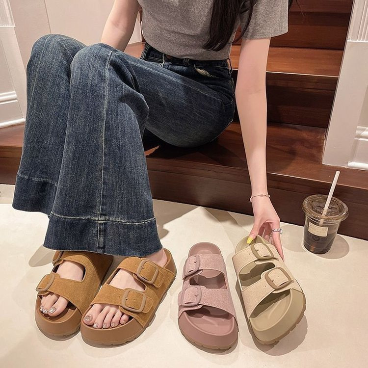 여성용 두꺼운 밑창 버켄스탁 슬리퍼, 여름 아우터웨어, 2025년 신형 비치 슬리퍼, 스커트와 샌들 슬리퍼스토어 가기