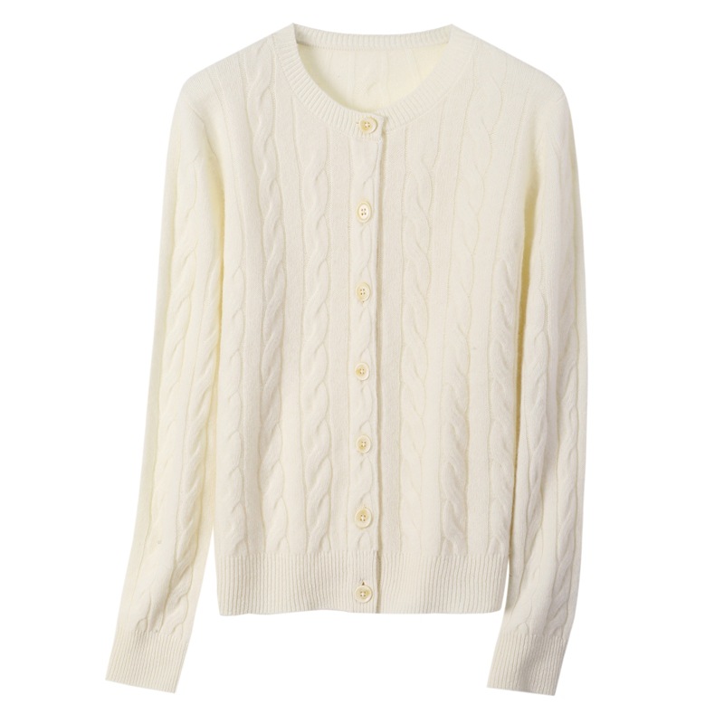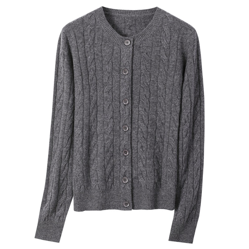 2025년 가을/겨울 신상 여성용 순모 가디건, 통근용으로 활용도 높은 단색 라운드넥 가디건