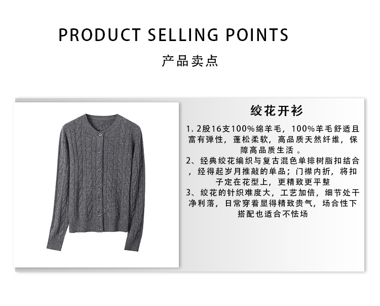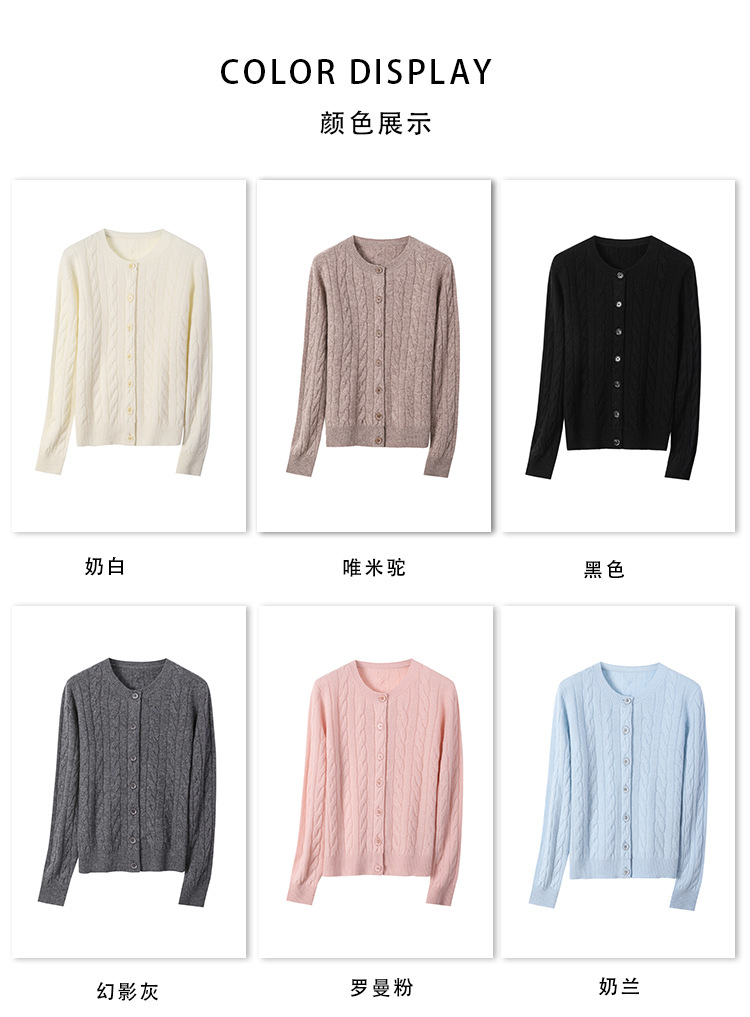 2025년 가을/겨울 신상 여성용 순모 가디건, 통근용으로 활용도 높은 단색 라운드넥 가디건스토어 가기