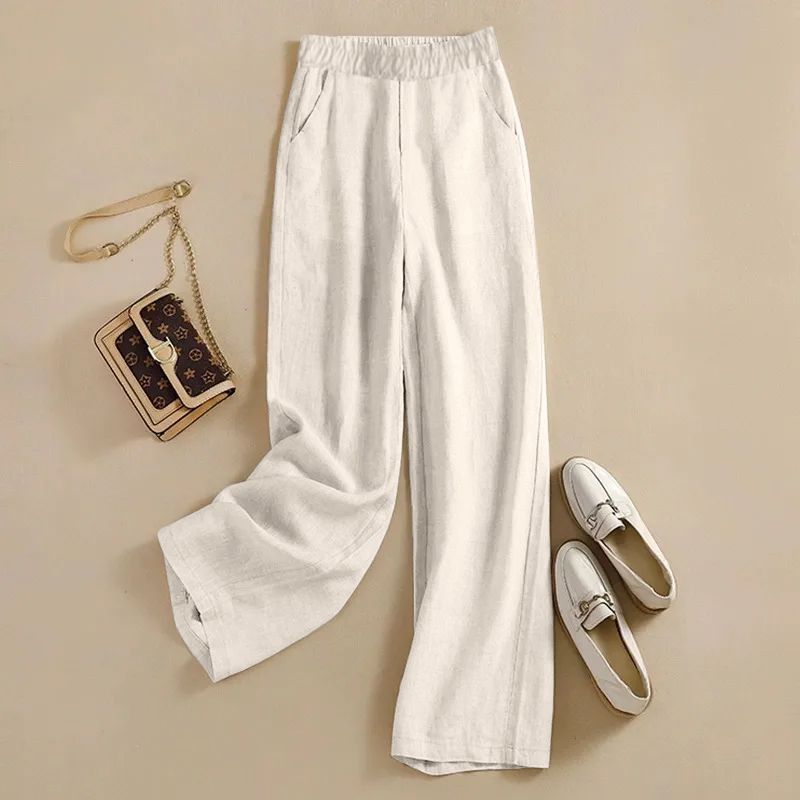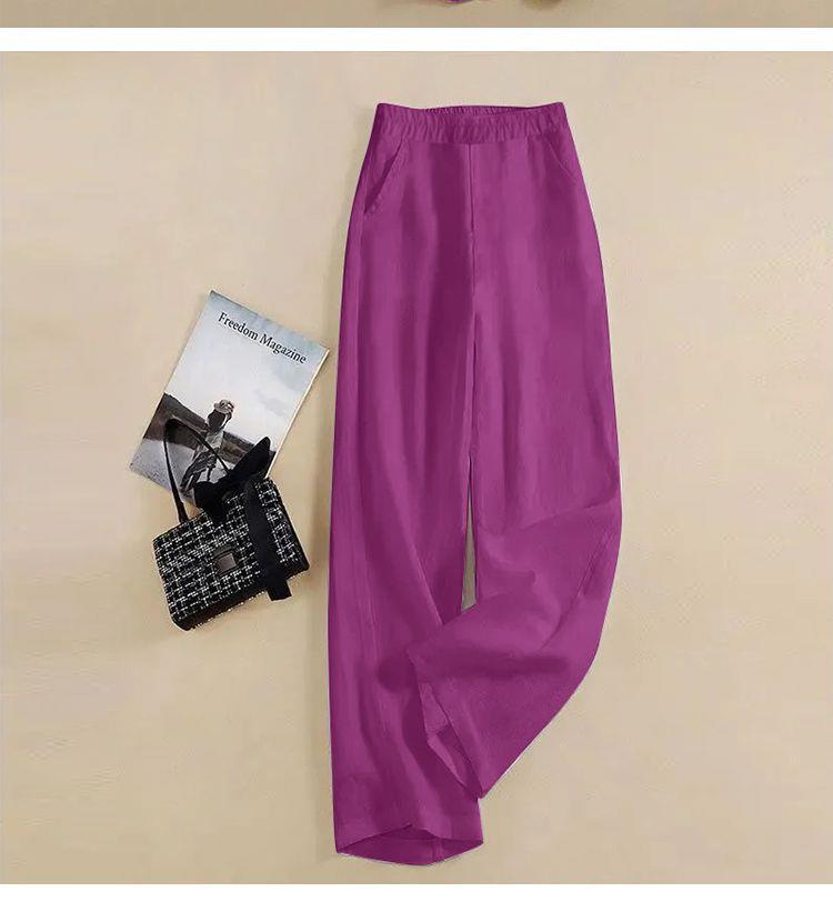 린넨 와이드 팬츠 여름 신작 여성용 루즈한 면 및 린넨 여성용 바지 드레이프 하이웨이스트 캐주얼 스트레이트 팬츠
