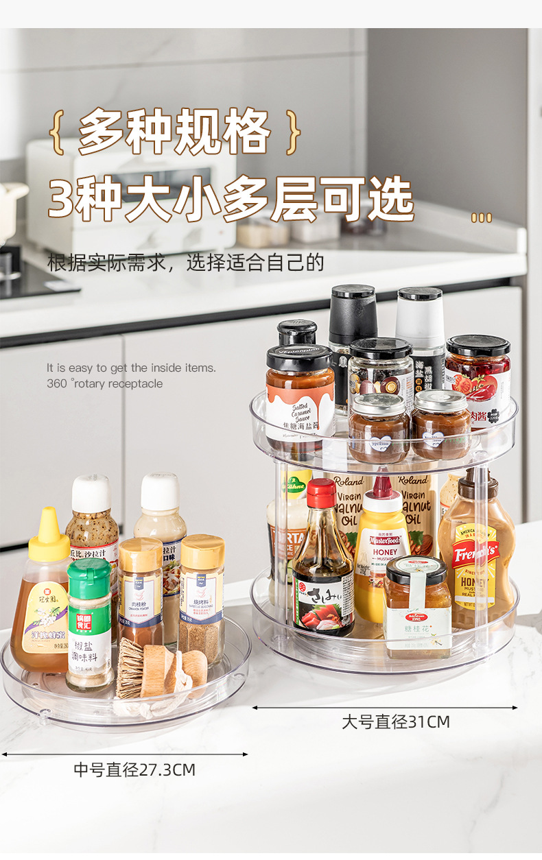 투명 회전 조미료 보관 랙 PET 주방 조미료 보관 랙 다기능 회전 디스크 보관 랙