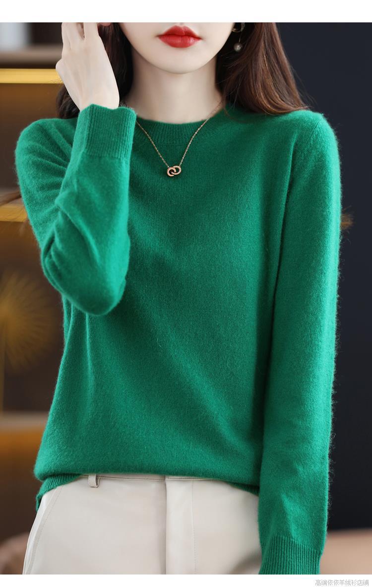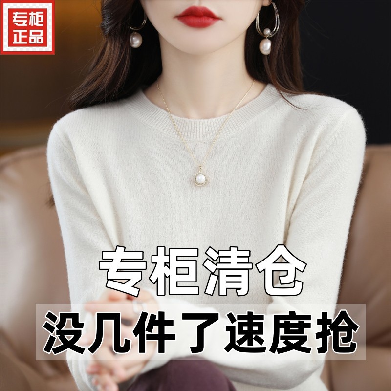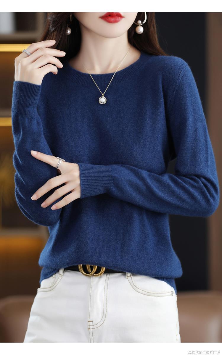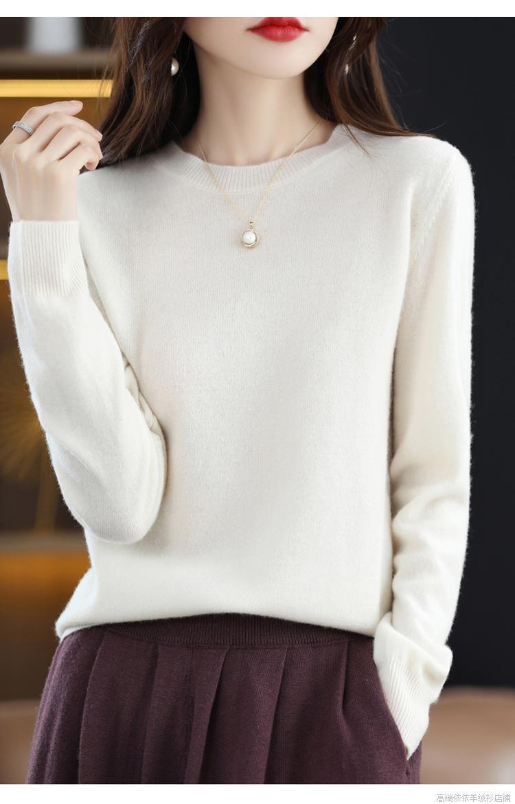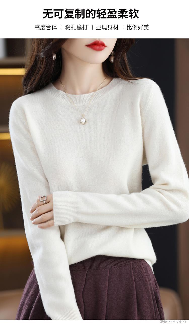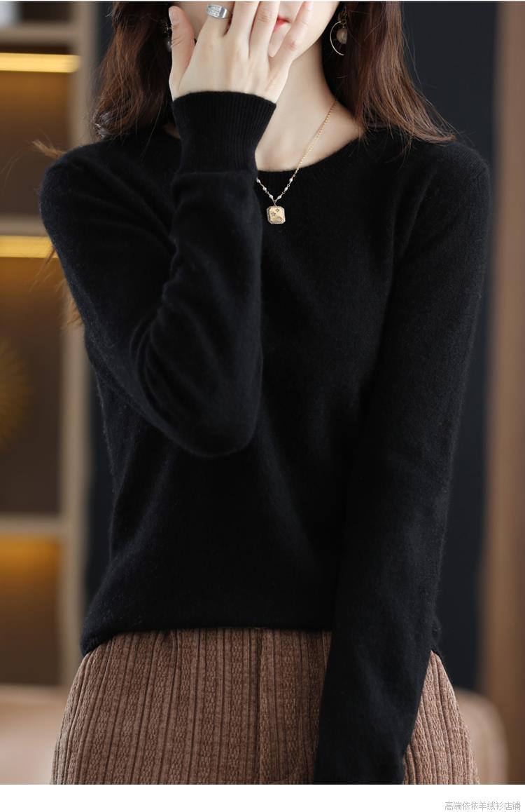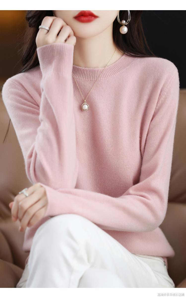 2025年春秋新款纯色羊毛衫女圆领毛衣宽松百搭大尺码针织打底羊绒스토어 가기