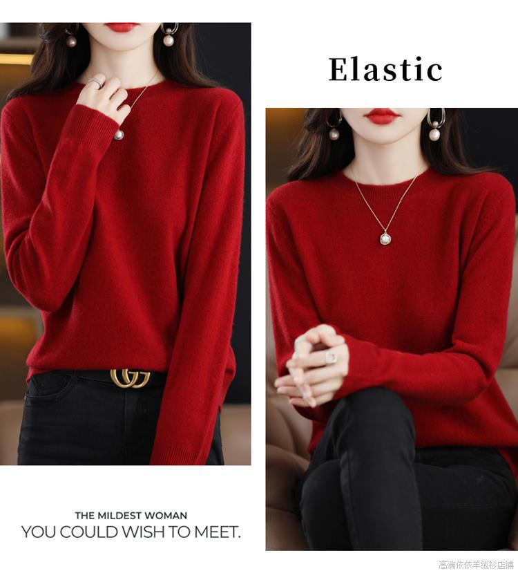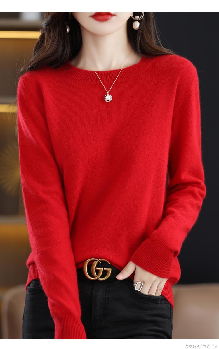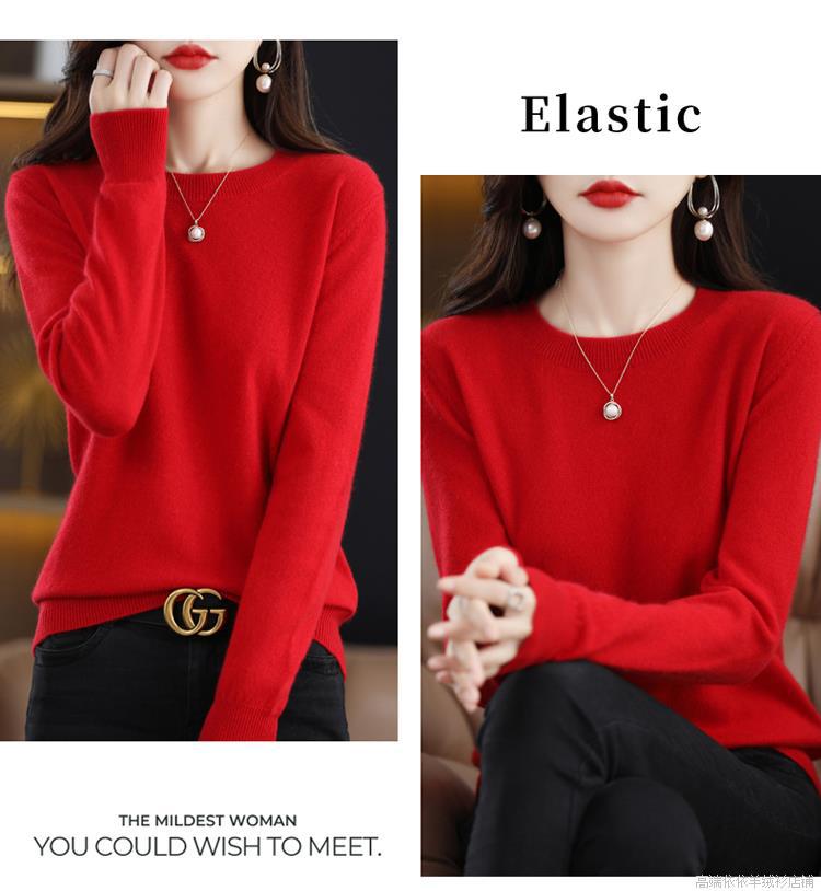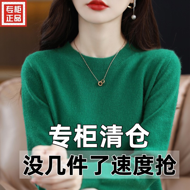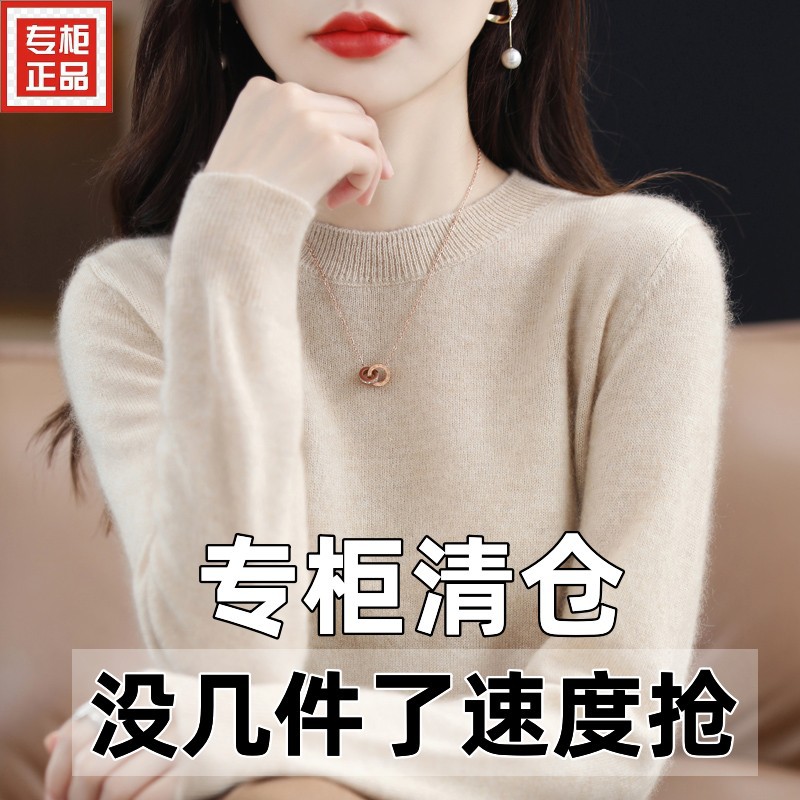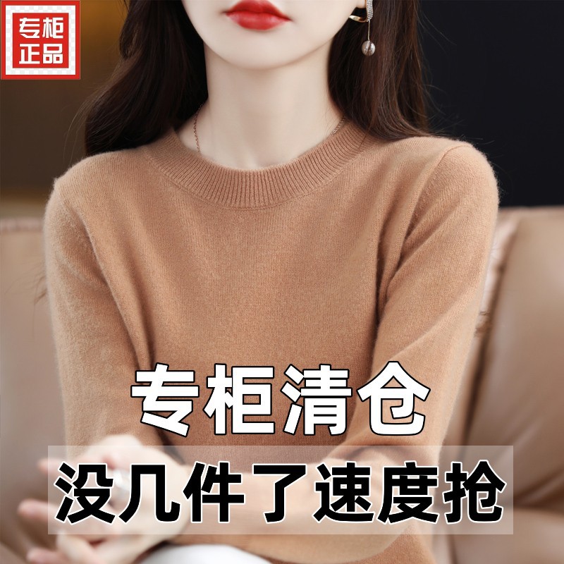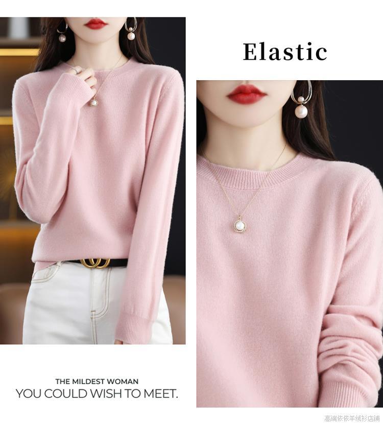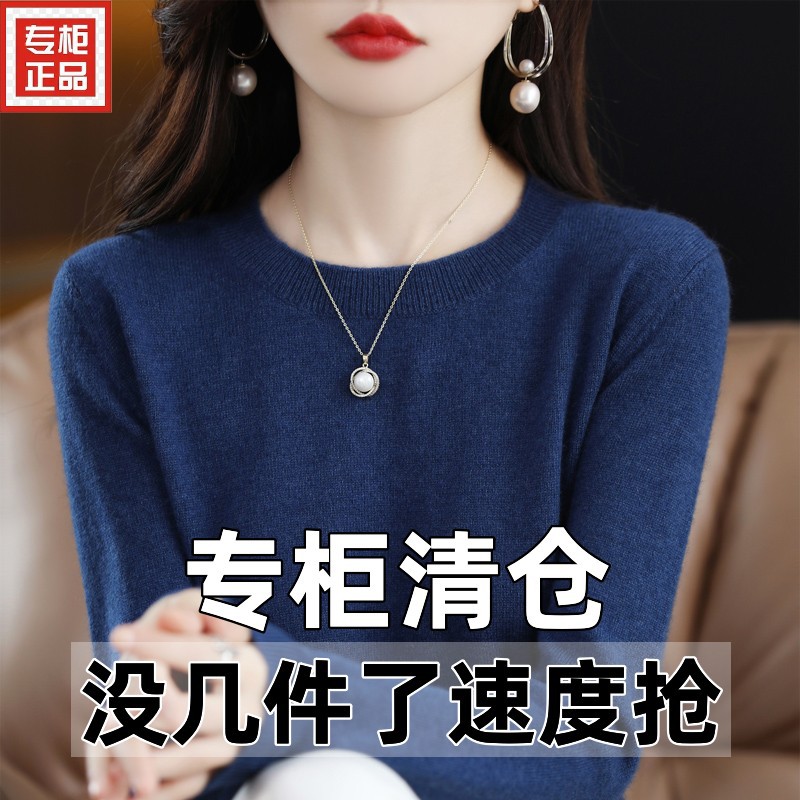2025年春秋新款纯色羊毛衫女圆领毛衣宽松百搭大尺码针织打底羊绒스토어 가기