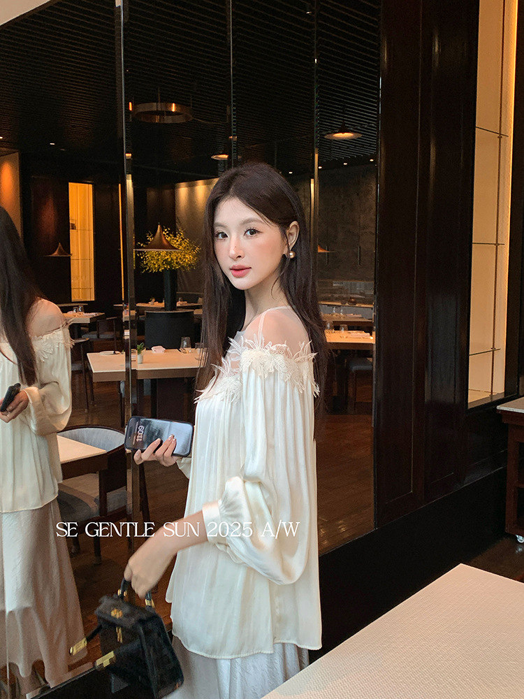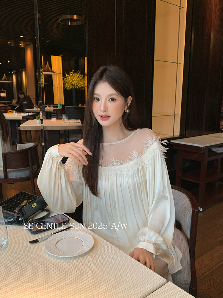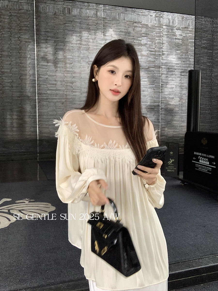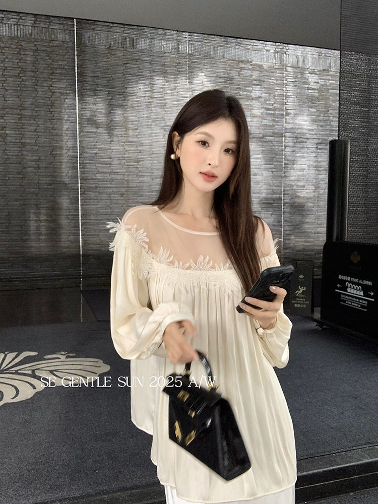 Xiuxixi 2025 가을 화이트 라벨 새로운 한국 스타일 다용도 꽃 쉬폰 반팔 셔츠 탑 89480