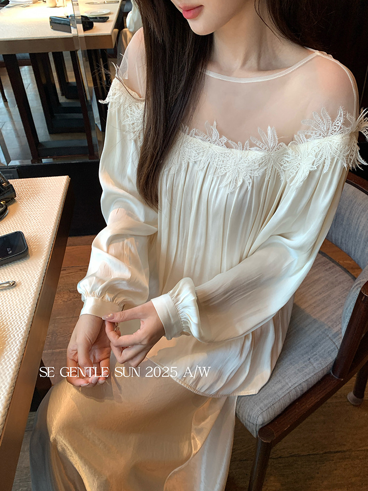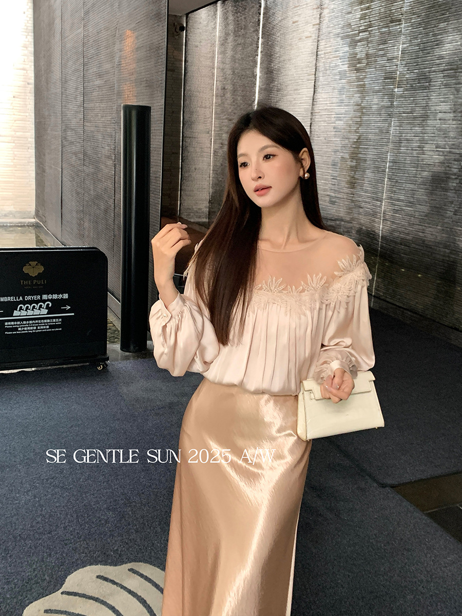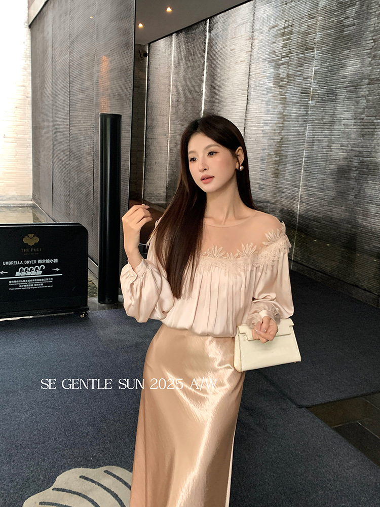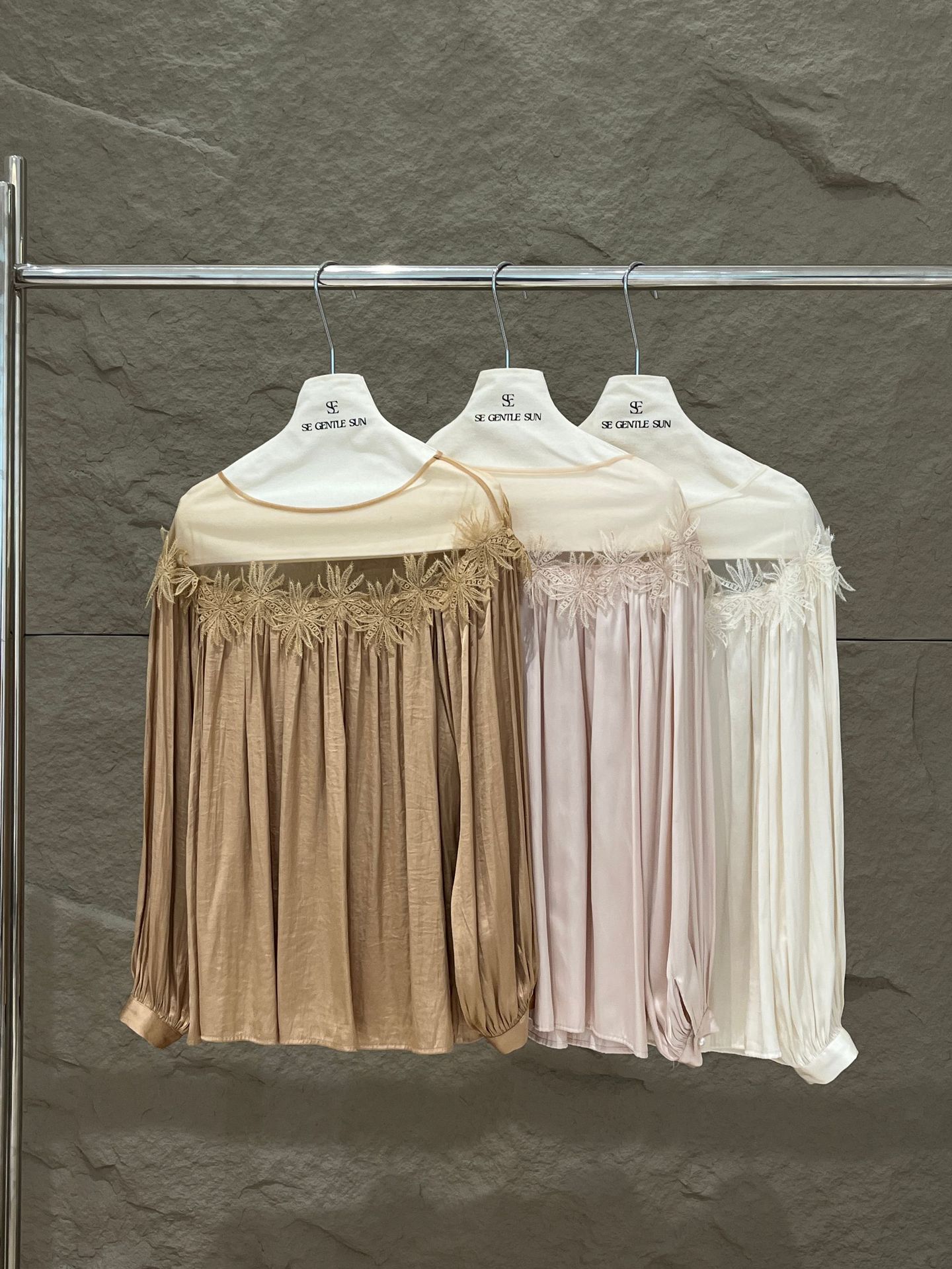 Xiuxixi 2025 가을 화이트 라벨 새로운 한국 스타일 다용도 꽃 쉬폰 반팔 셔츠 탑 89480
