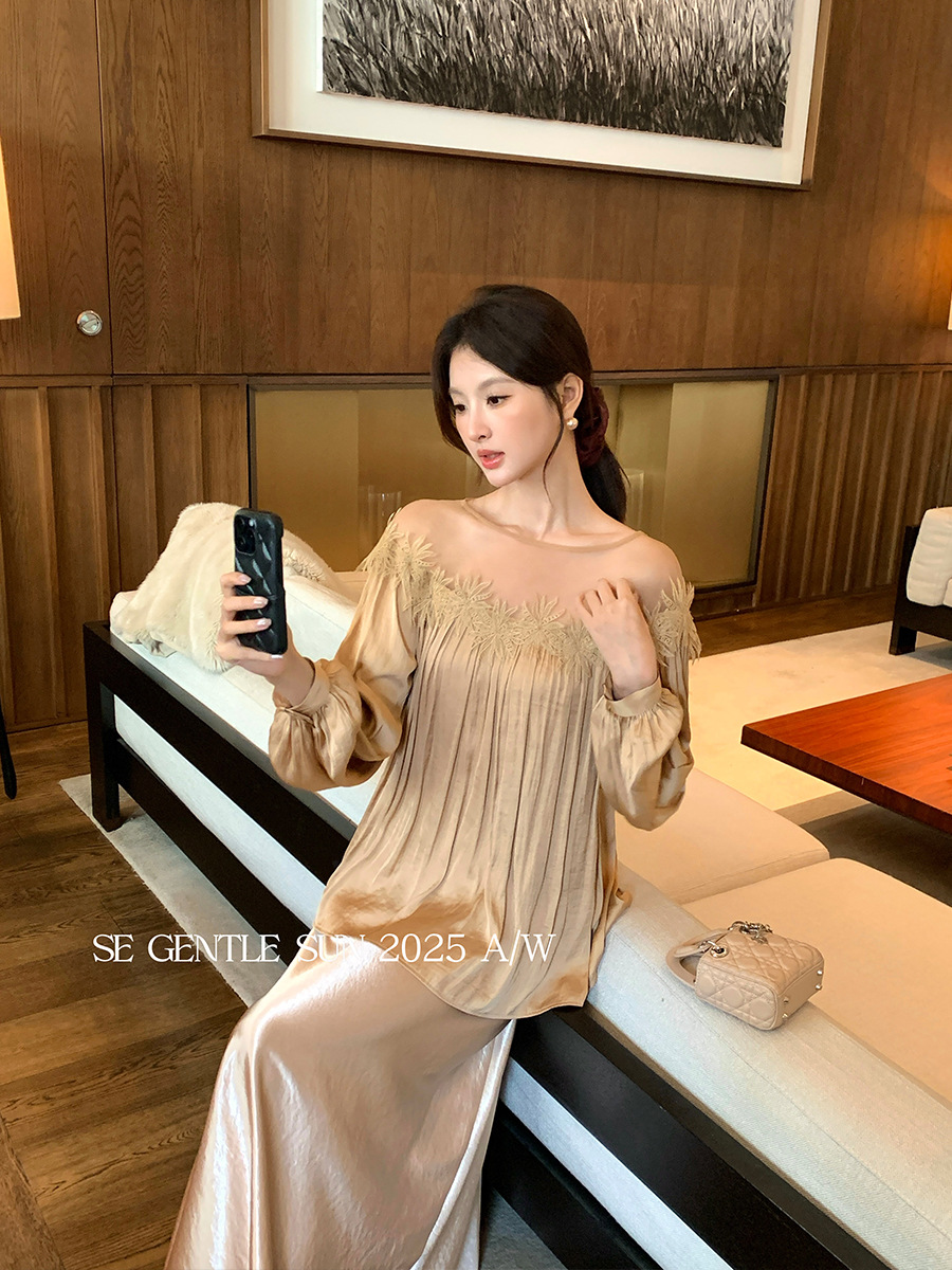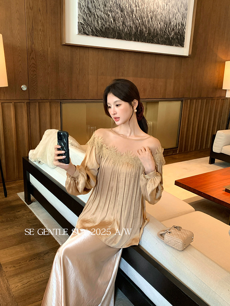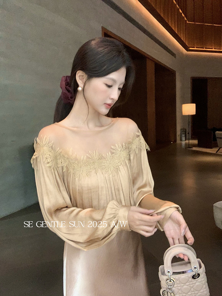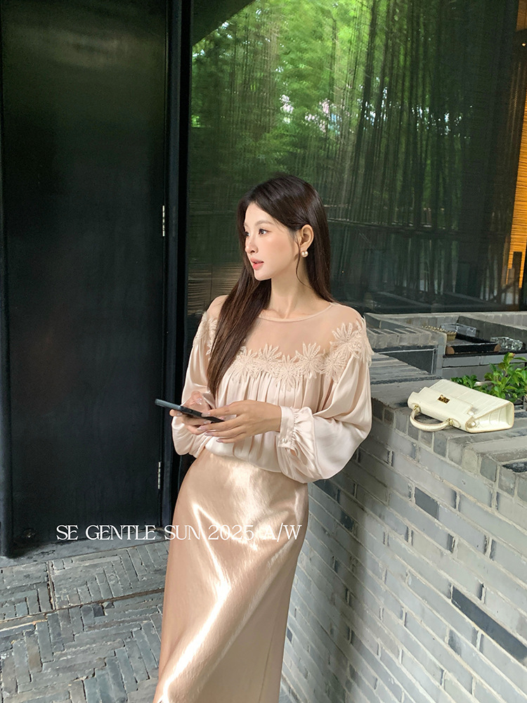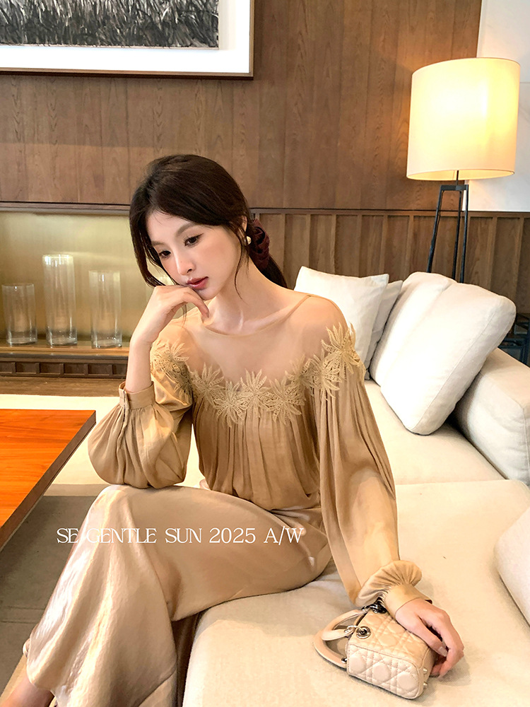 Xiuxixi 2025 가을 화이트 라벨 새로운 한국 스타일 다용도 꽃 쉬폰 반팔 셔츠 탑 89480스토어 가기