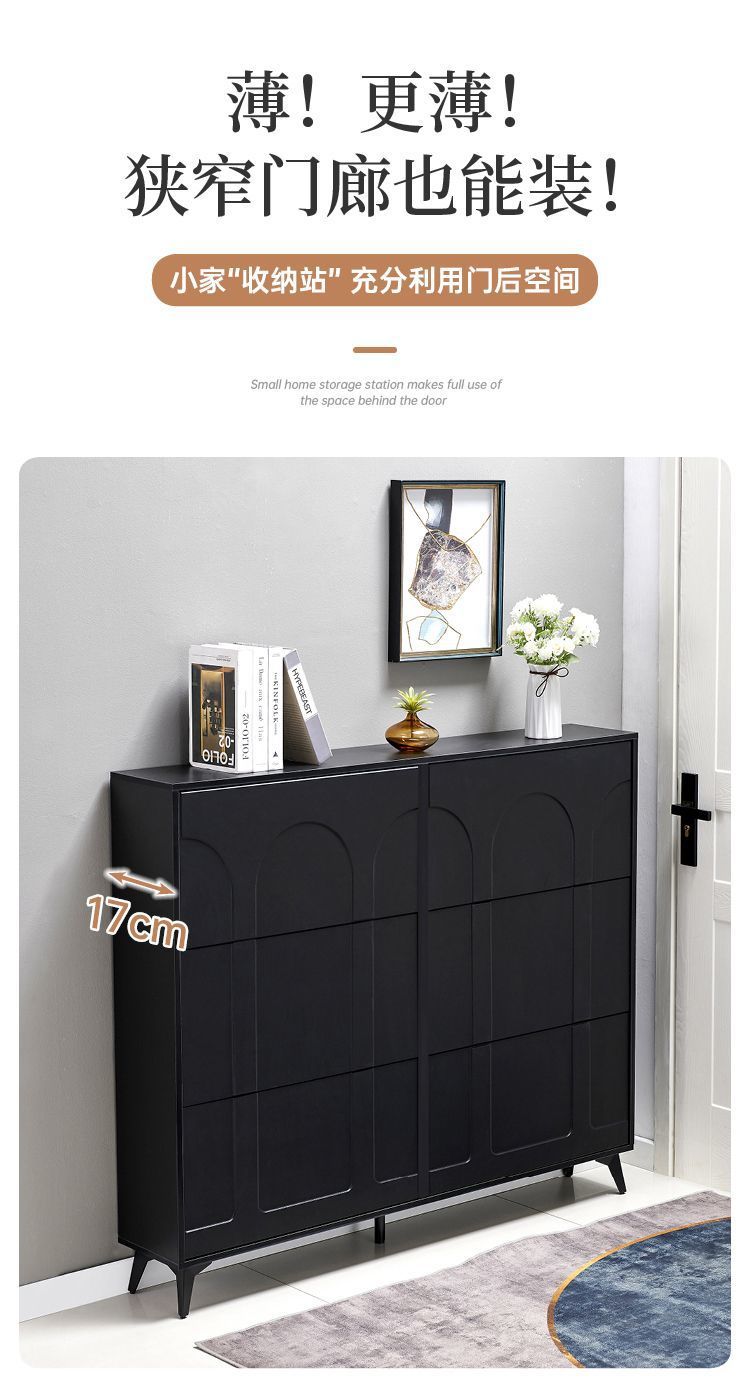 초박형 신발장, 모던하고 심플한 블랙 대용량 현관 캐비닛, 덤프 트럭 신발장, 공간 절약형 경제적인 가정용 신발장스토어 가기