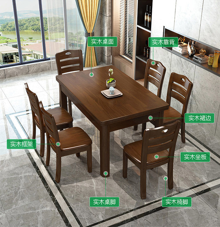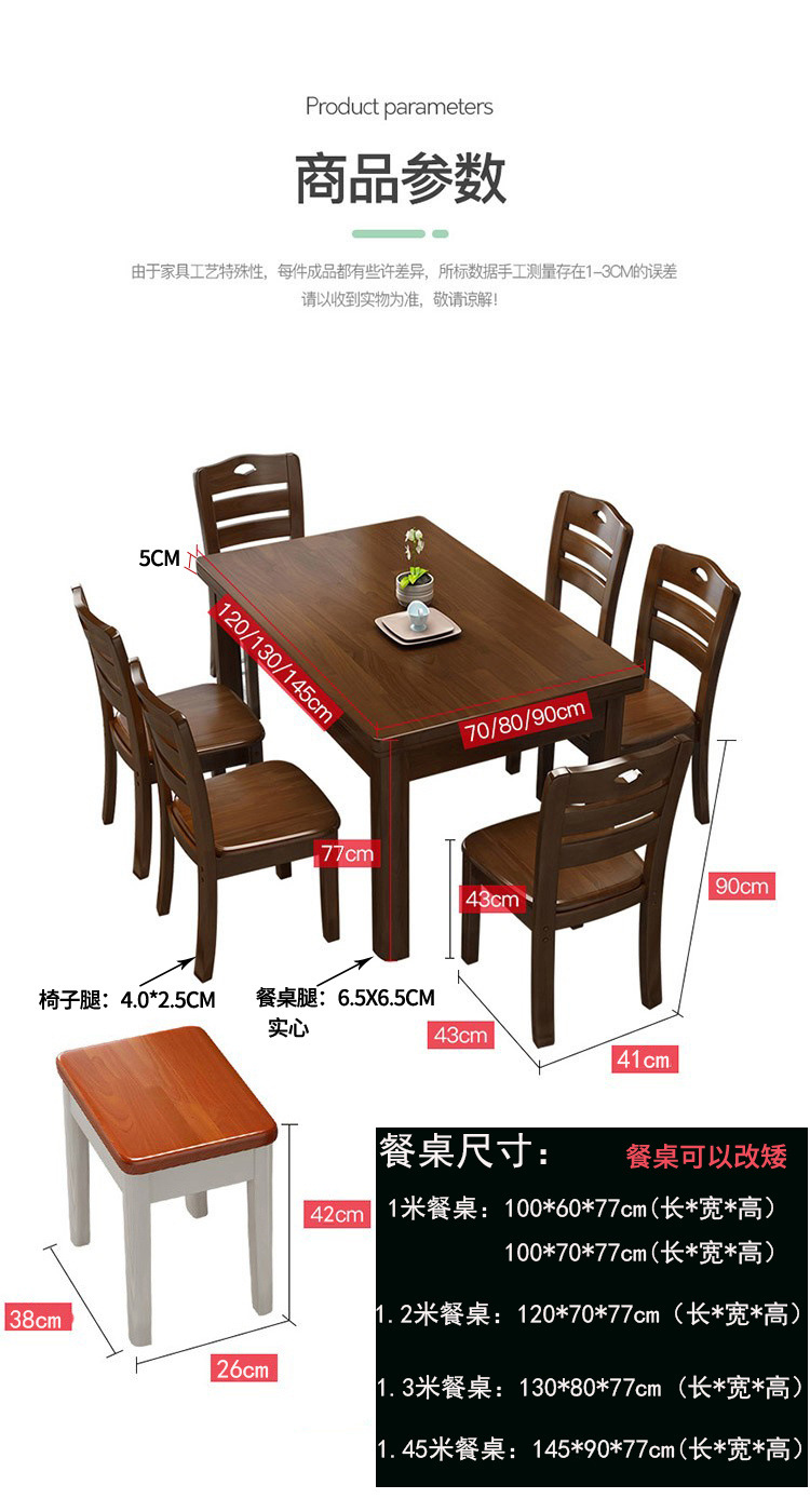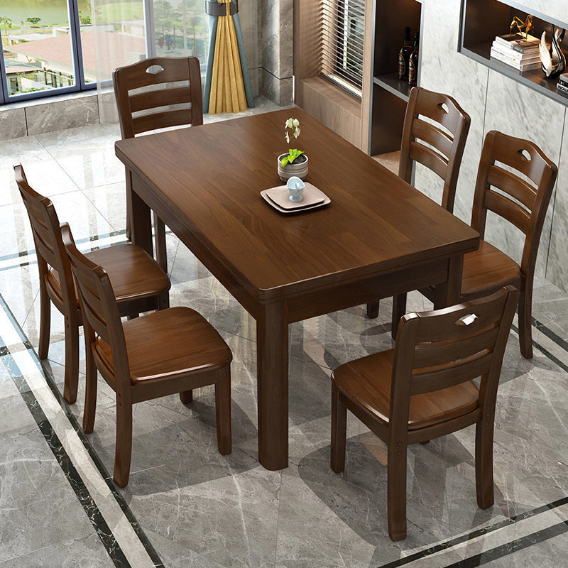 모든 단단한 나무 식탁과 의자 조합 직사각형 사각형 테이블 두꺼운 식탁 작은 아파트 가정용 북유럽 서양식 식탁