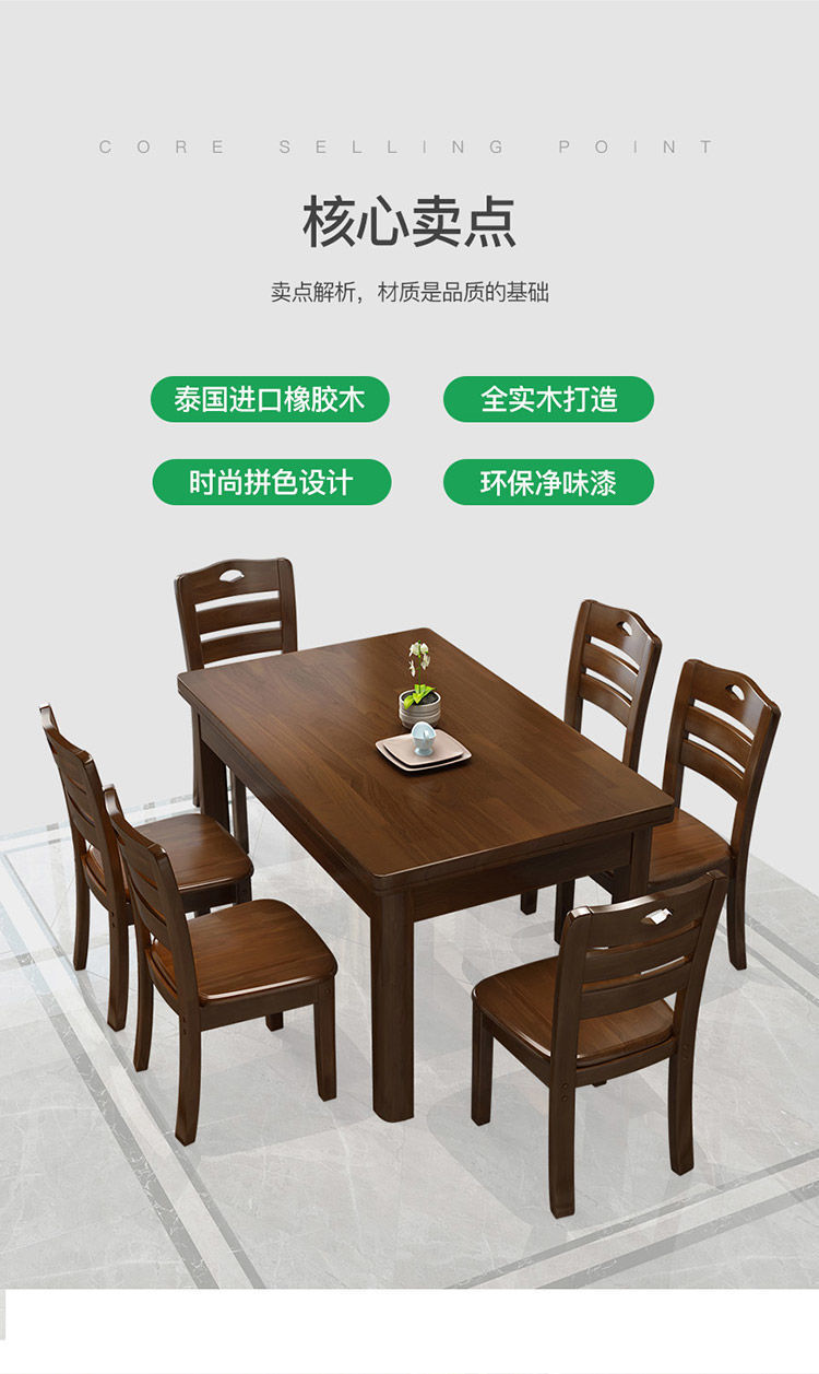 모든 단단한 나무 식탁과 의자 조합 직사각형 사각형 테이블 두꺼운 식탁 작은 아파트 가정용 북유럽 서양식 식탁스토어 가기