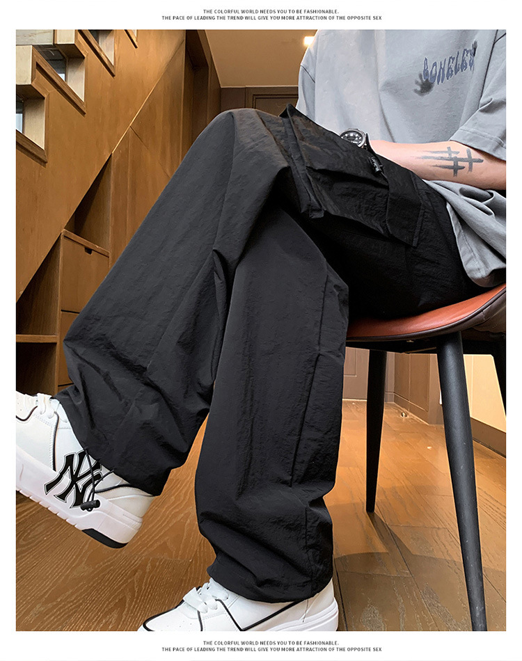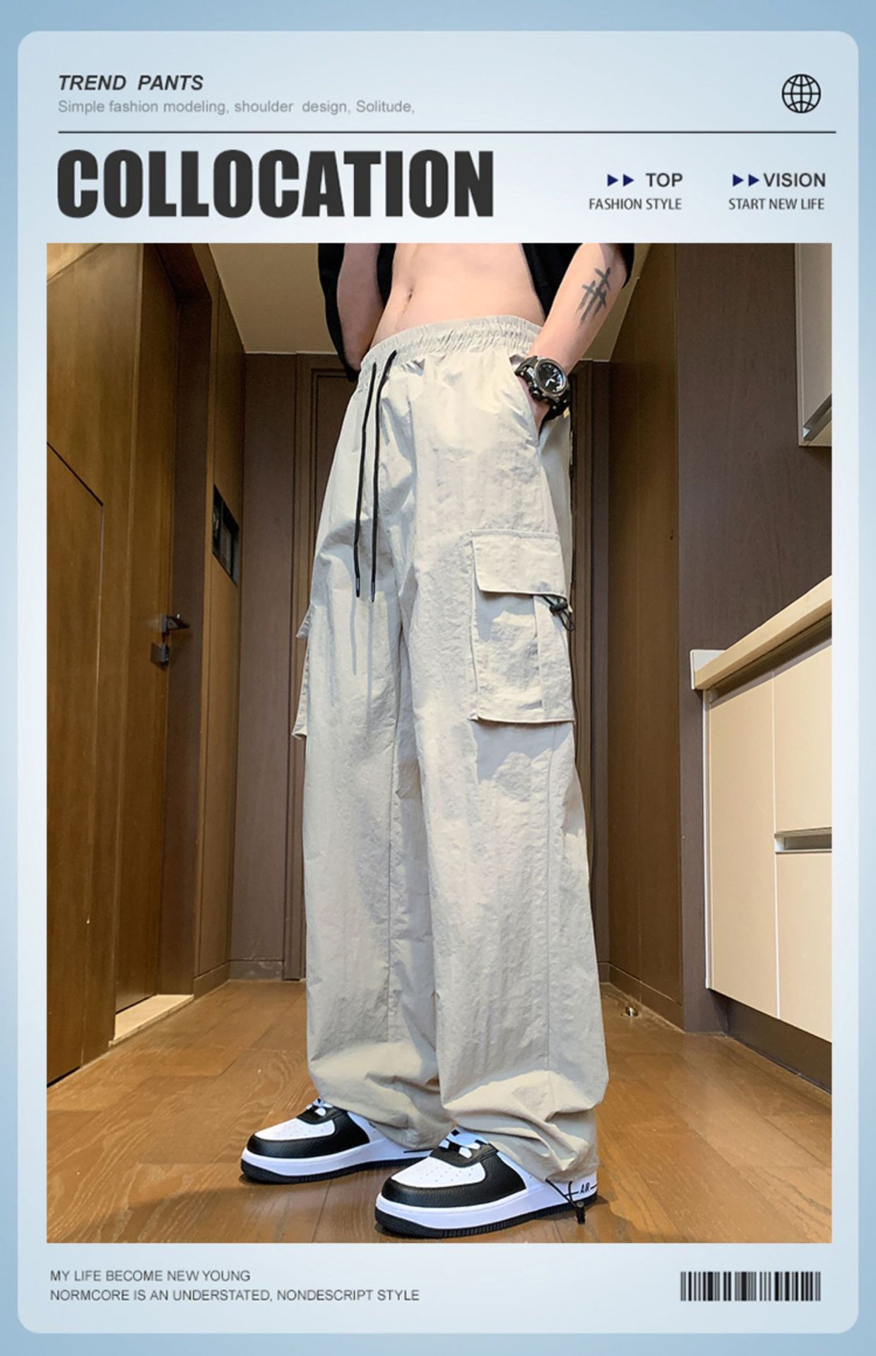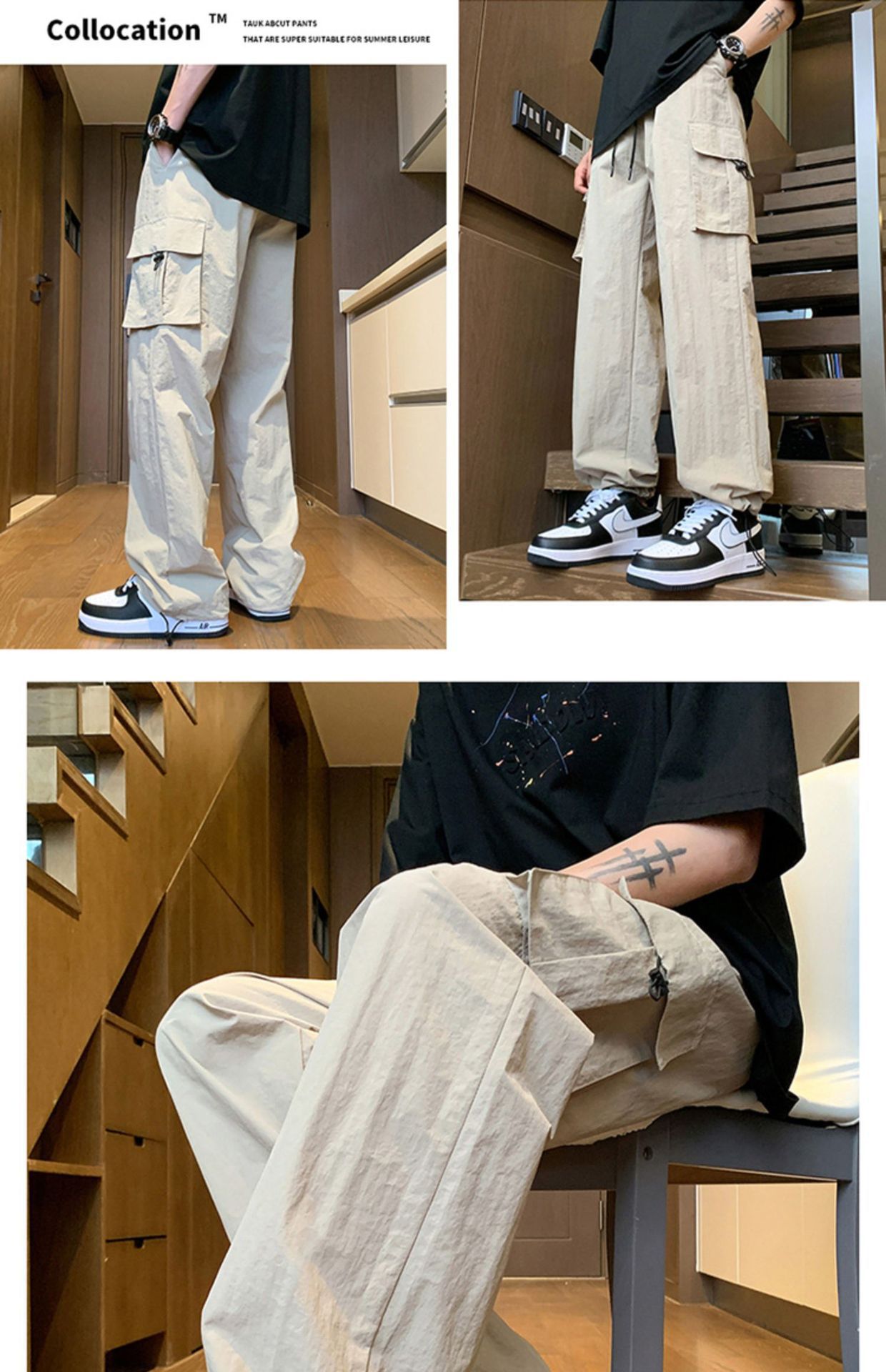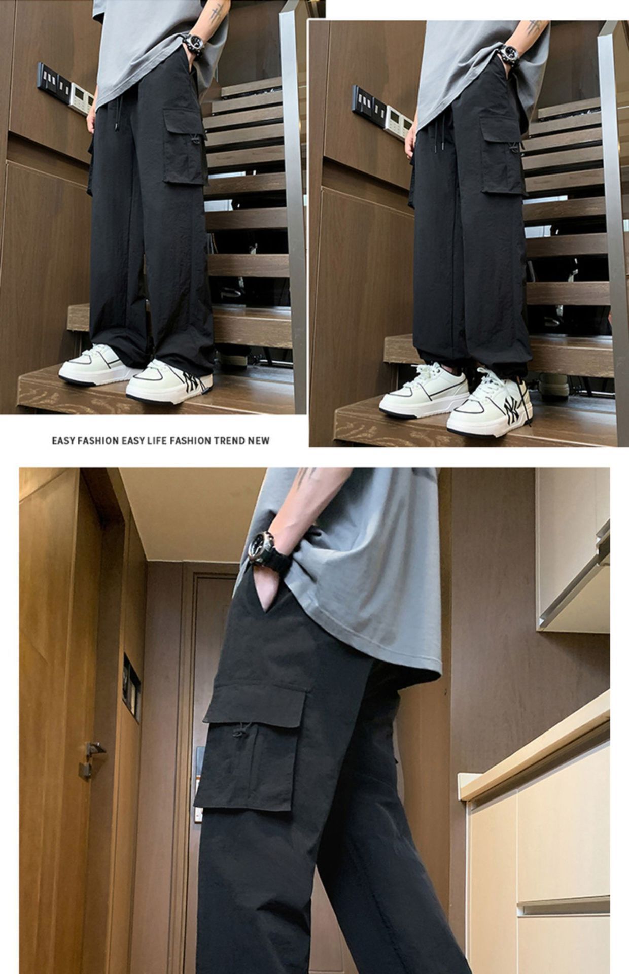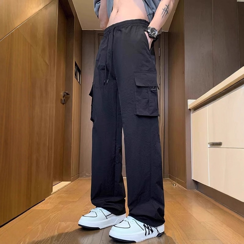 아이스 실크 작업복 남성 여름 얇은 느슨한 스트레이트 캐주얼 바지 2025 새로운 소년 탄성 넓은 다리 바지스토어 가기